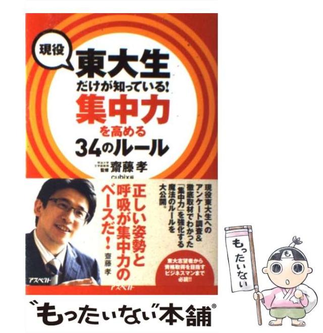 商品名:【中古】 現役東大生だけが知っている!集中力を高める34のルール / cubix、齋藤孝 / アスペクト [単行本]【メール便送料無料】