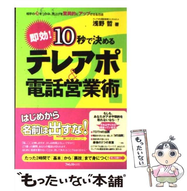 【中古】 即効!10秒で決めるテレアポ&電話営業術 相手の心をつかみ、売上げを驚異的にアップさせる方法 / 浅野哲 / フォレスト出版 [単行本(ソフトカバー)]【メール便送料無料】