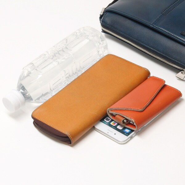 本体素材にはまばらに染料を入れアンティーク加工をした国産牛革を使用。