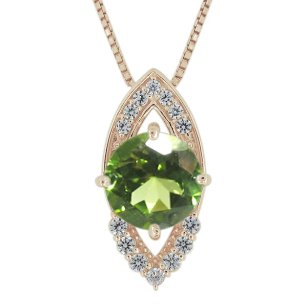 8月誕生石ペリドットを一粒使用した、18金製のネックレスペンダントです。