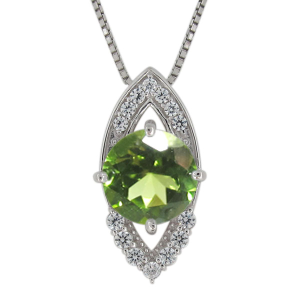 8月誕生石ペリドットを一粒使用した、プラチナ製のネックレスペンダントです。