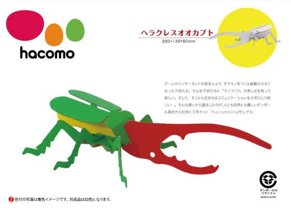 工作キット ダンボール製 hacomo kids ヘラクレスオオカブト ( ダンボール 段ボール カブトムシ おもちゃ ペーパークラフト 工作 子ども キッズ 組み立て 手作り キット 組立 作る 簡単 リサイクル エコ 立体的 お絵描き 色塗り )