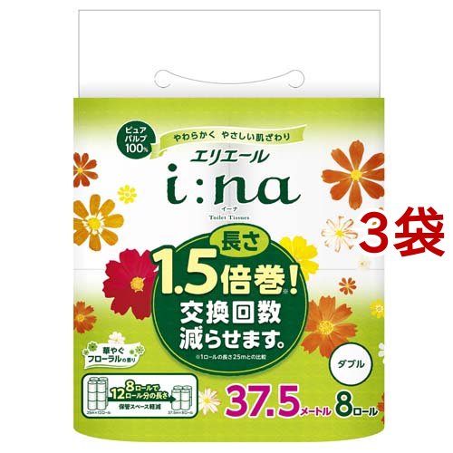 エリエール イーナ トイレットティシュー1.5倍 ダブル(8ロール*3袋セット)[トイレットペーパー ダブル]