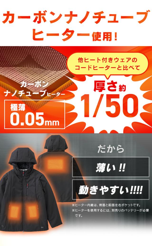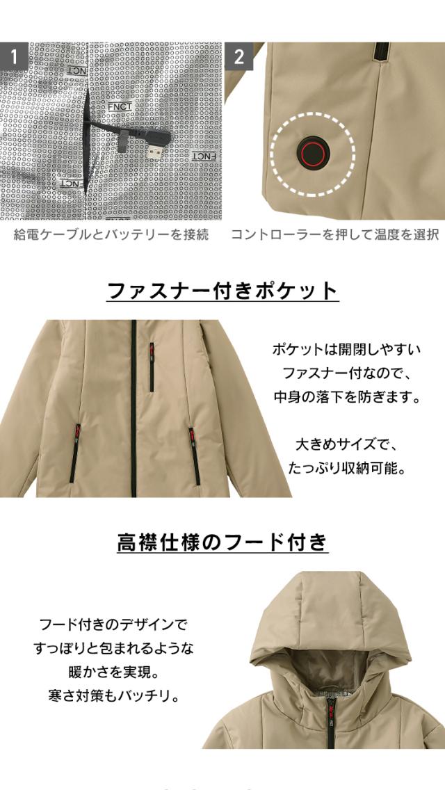 パーカー 防寒着 ヒーター付 裏アルミヒート中綿ジャケット FC21617 電熱ベスト アウター ヒーター付き 釣り ヒートベスト メンズ レディース ダウン アウトドア ゴルフ キャンプ 作業服 ブラック ベージュ S M L XL ジャケット バッテリー別売り