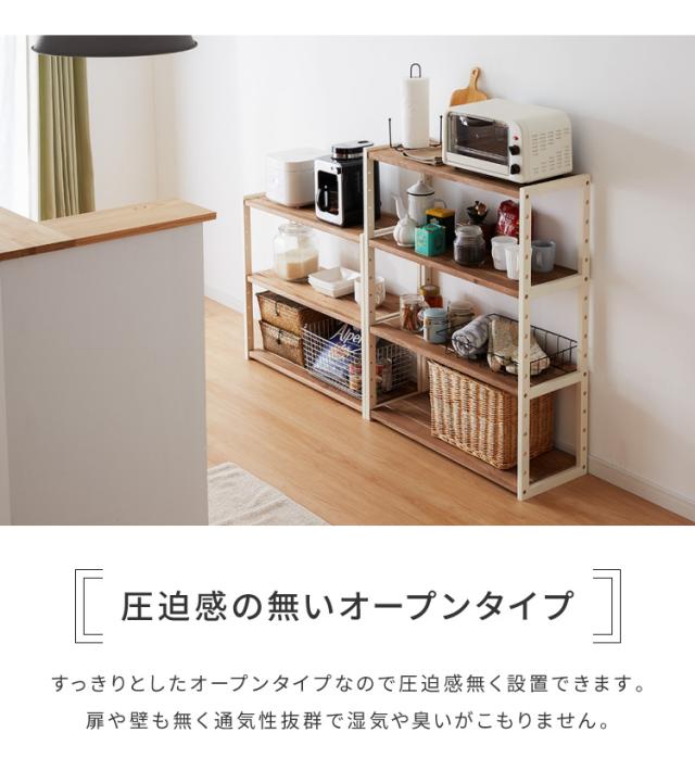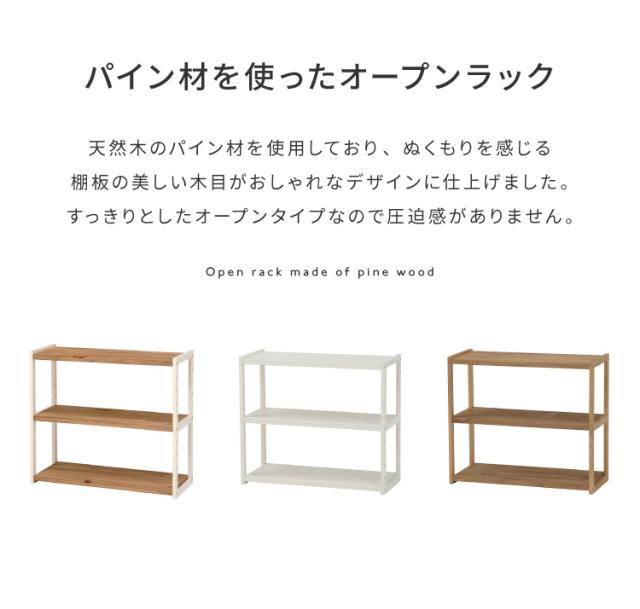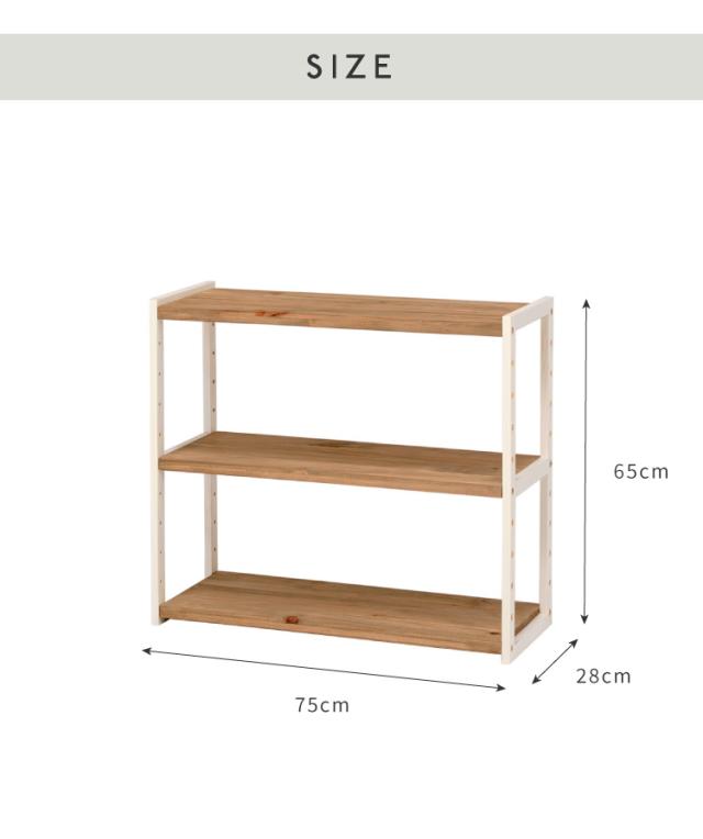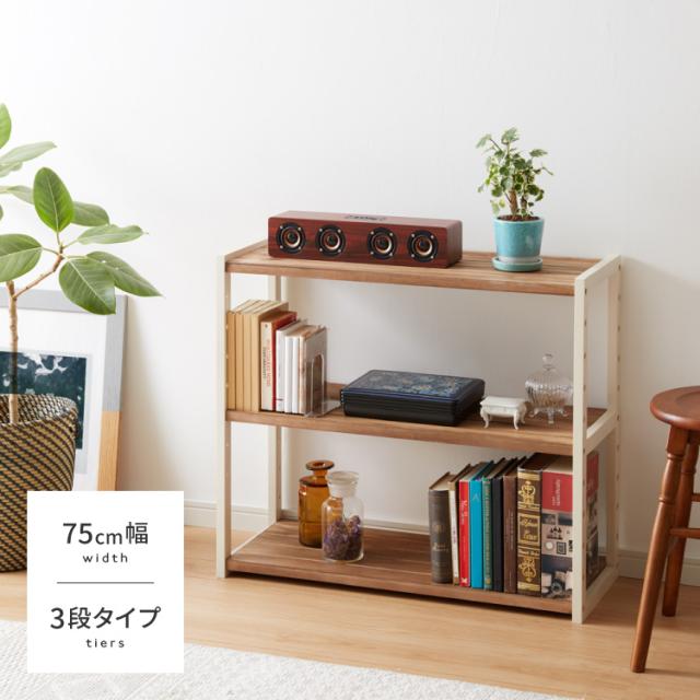 ラック オープンラック 3段 幅75cm 天然木 シェルフ 本棚 収納 ディスプレイ フリーラック カントリー調 多目的ラック(代引不可)【送料無料】