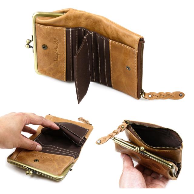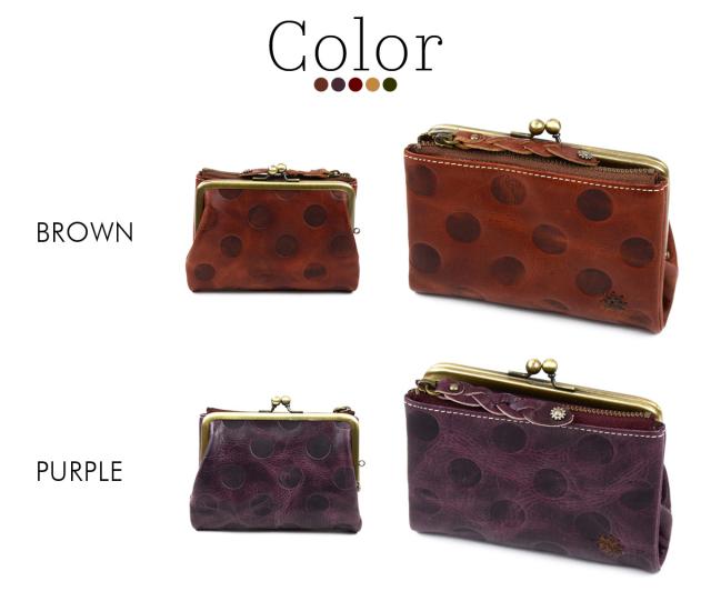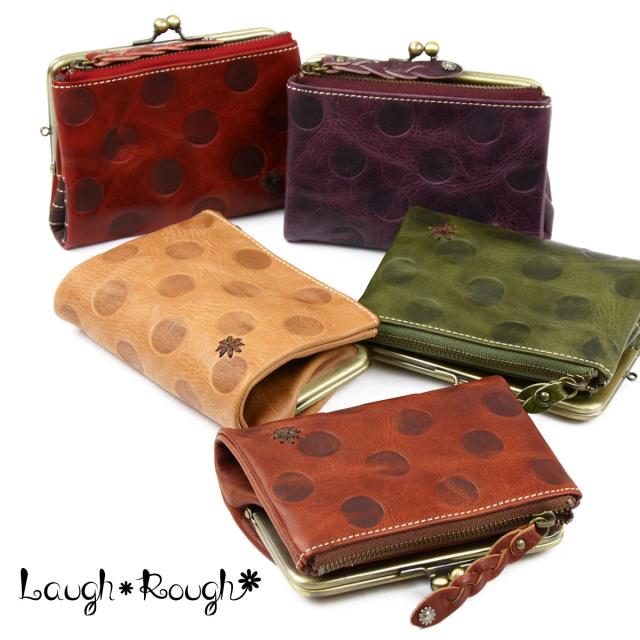 二つ折り財布 がま口財布 がまぐち財布 ベロ付き 袋縫い 本革財布 水玉 ドット 型押し レディース Laugh Rough ラフラフ