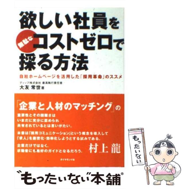 商品名:【中古】 欲しい社員を無駄なコストゼロで採る方法 / 大友 常世 / ダイヤモンド社 [単行本]【メール便送料無料】