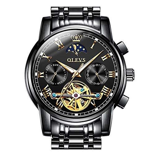 送料無料 OLEVS 自動巻き機械式メンズ腕時計 トゥールビヨン ムーンフェーズ ステンレススチ