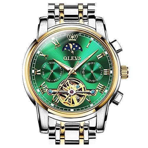 送料無料 OLEVS 自動巻き機械式メンズ腕時計 トゥールビヨン ムーンフェーズ ステンレススチ