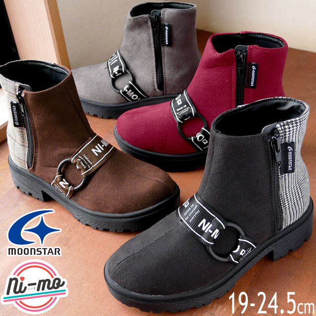 キッズ ジュニア 女の子 秋冬 新作 秋新作 冬新作 FW ショートブーツ 人気 流行 定番 MoonStar Cawaii Plus NM J046 ムーンスター ニーモ 子供靴 スタイルアップ においケア 抗菌 防臭 ファスナー付き ブラック 黒 ブラウン ワイン トープ