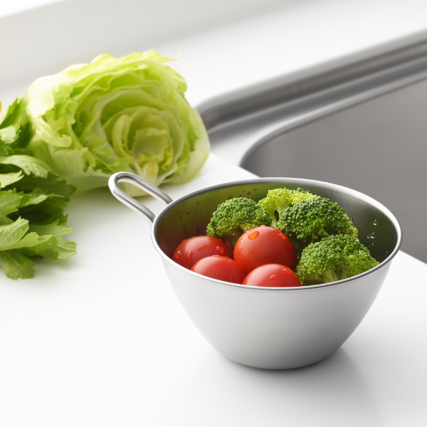 小さめのボウルが欲しくて選びました。大は小を兼ねない、ボウル。調味料を混ぜたり、さっと使うのに便利なサイズです。ボウルの色は艶消しカラーで渋みのあるステンレスの風合いでかっこいいです。