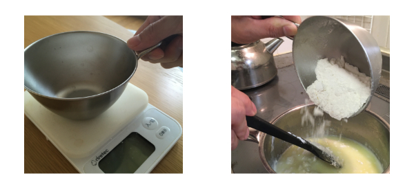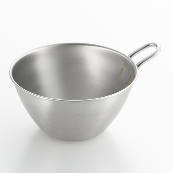今回は、シュークリームの生地を作る際に使用しました。粉の計量するのに、取っ手があるので、楽に持てますし、少しずつ粉を入れるのにも調整が出来ます。混ぜる際も持ち手がついているだけで、押さえる必要が微力で済みます。持ち手の大きさもちょうどよく、添えるだけでボウルのバランスが取れるので、安定し使いやすかったです。