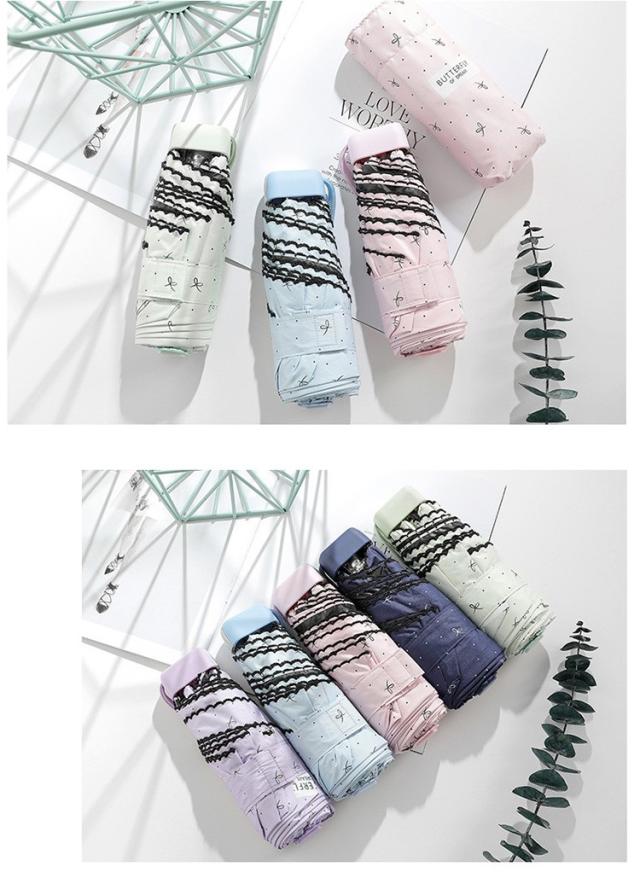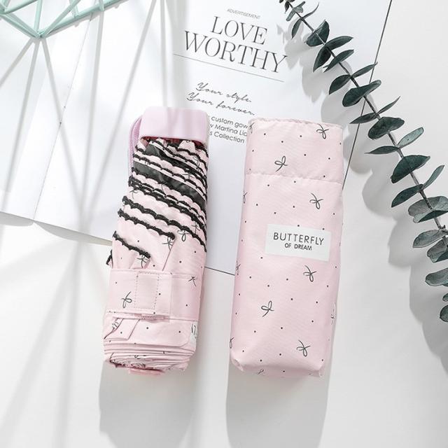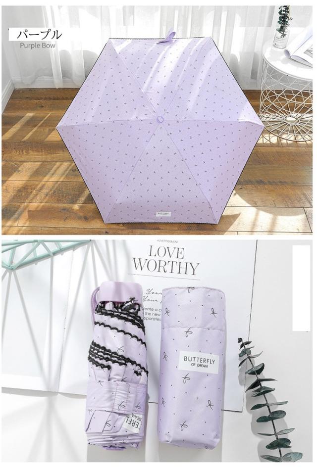 日傘 折りたたみ傘 レディース おしゃれ 日傘 完全遮光 折りたたみ傘 リボン ミニ傘 UVカット 日傘 軽量 晴雨兼用 雨傘 遮光 遮熱 五段折りたたみ 紫外線カット