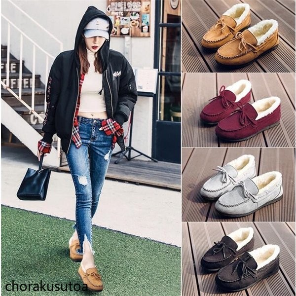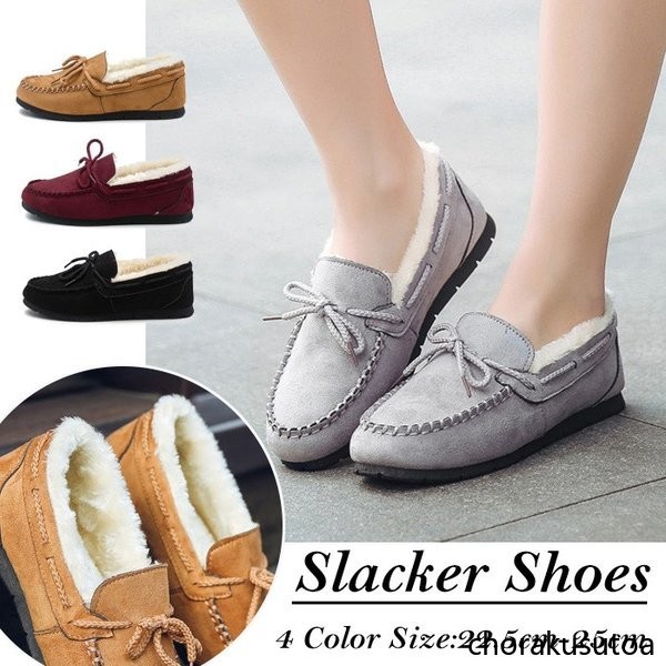 モカシン ムートン シューズ レディース 秋 冬 パンプス 裏ボア もこもこ フラットシューズ ぺたんこ 靴 ファーシューズ ムートンローファー 暖か