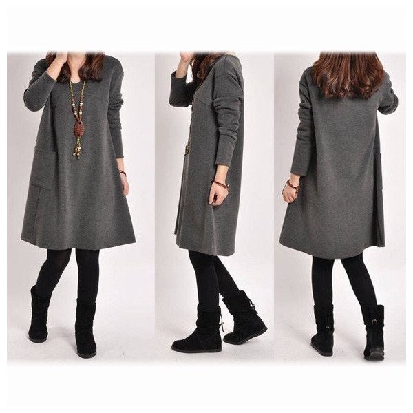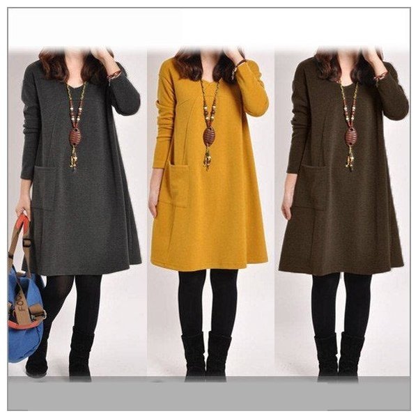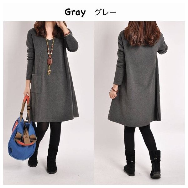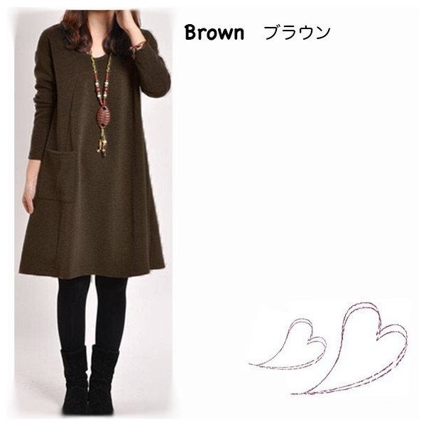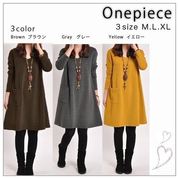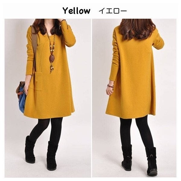 レディース ワンピース Aラインワンピース 無地 長袖 大きいサイズ チュニックワンピ カットソー
