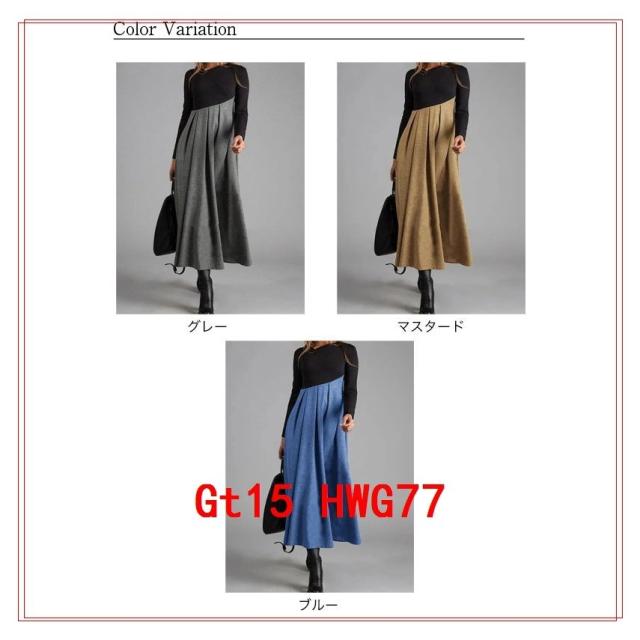バイカラーワンピースロング丈長袖フレアタイトカジュアルきれいめ秋冬ワンピースレディース()