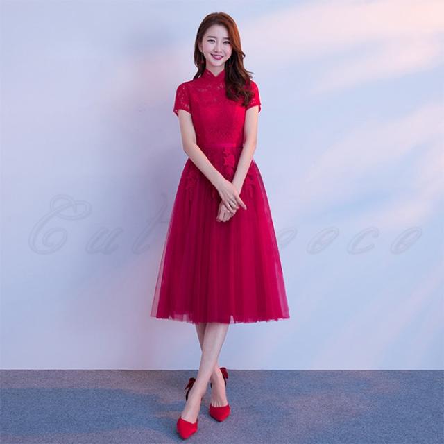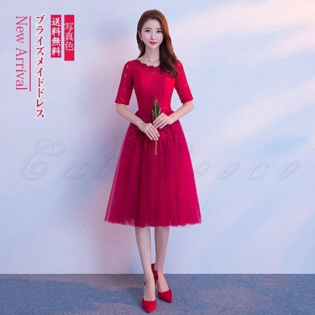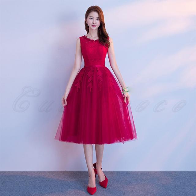 イブニングドレス パーティードレス フォーマルドレス ロングドレス 赤 膝下 aラインドレス コンサート 演奏会