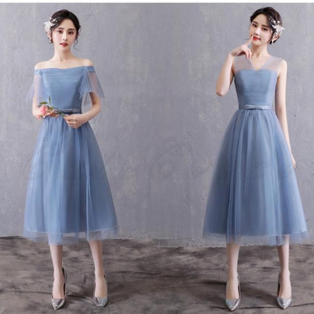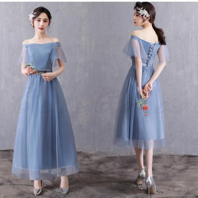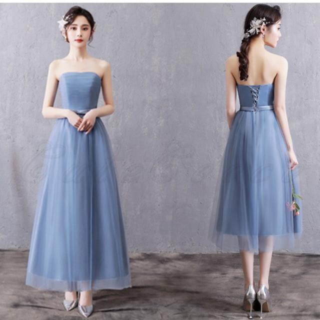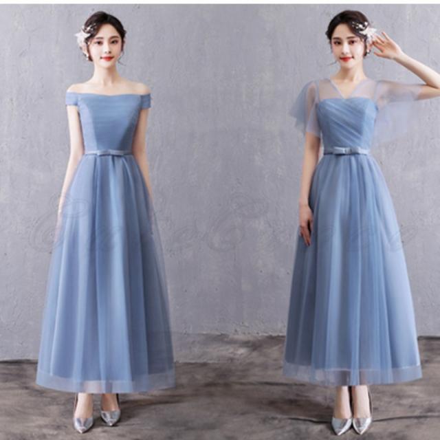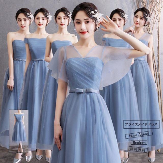 ブライズメイド パーティードレス レディース ウエディング 花嫁 編み上げ ロング ワンピース 水色 格安 結婚式 二次会 披露宴 発表会 演奏会