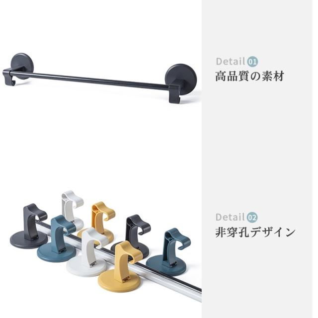 2個セット タオル掛け タオルハンガー 粘着式 浴室 布巾 洗濯機 洗面所 物干し バスルーム 梅雨対策 省スペース 穴あけ不要