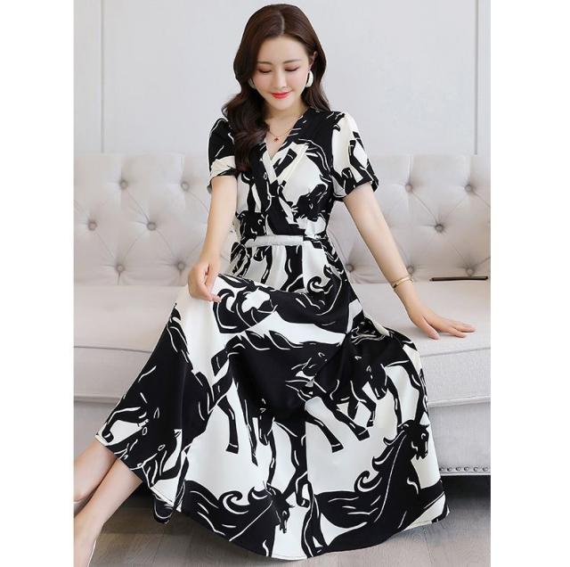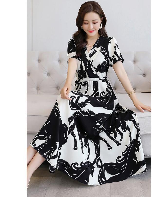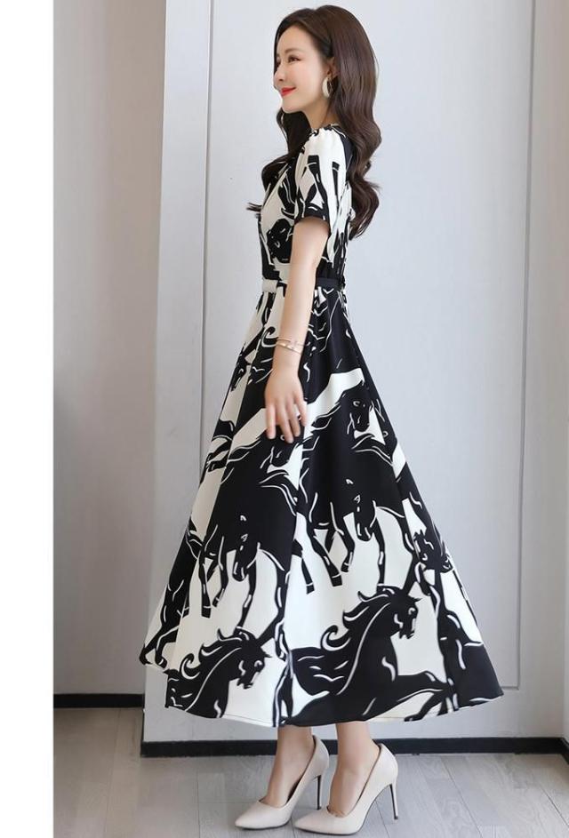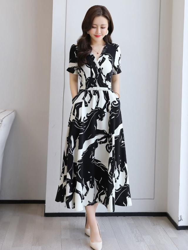 ワンピース アニマル柄 半袖 ウエストマーク カシュクール ロングワンピース ヨーロピアン 上品 可愛い フェミニン 休日 大人可愛い /