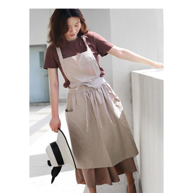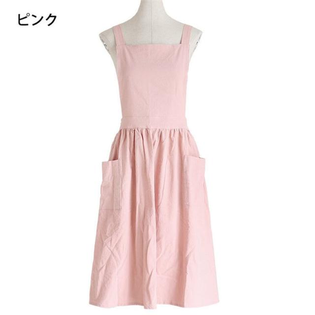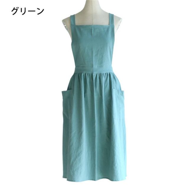 エプロン リネンコットンエプロン ワンピースエプロン レディースエプロン 無地 純綿 ワークエプロン ロングエプロン カフェ 保育士 料理人 スーパー用 花屋