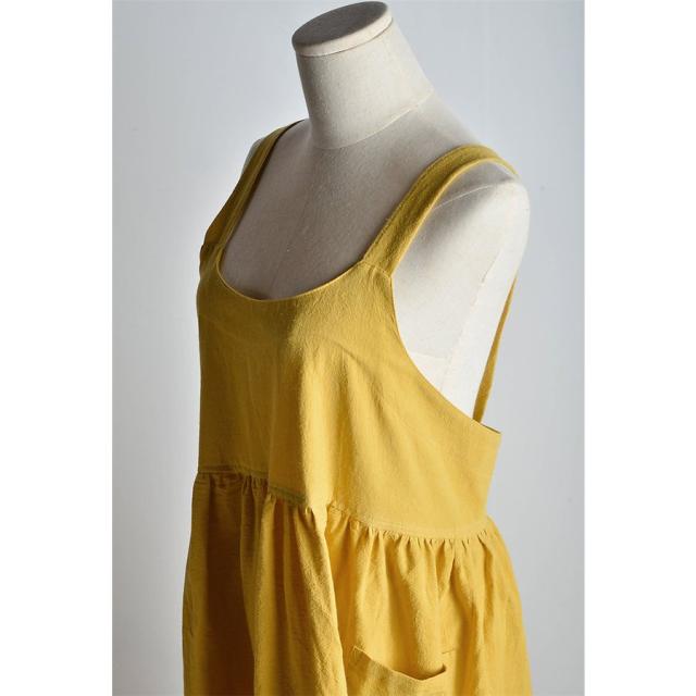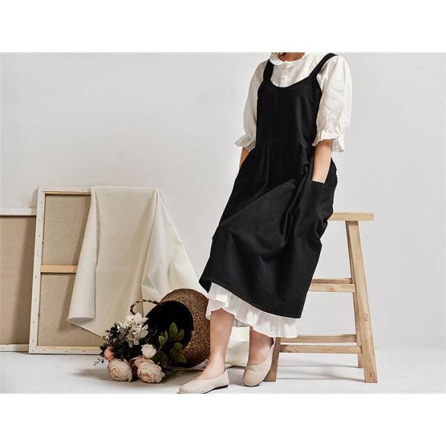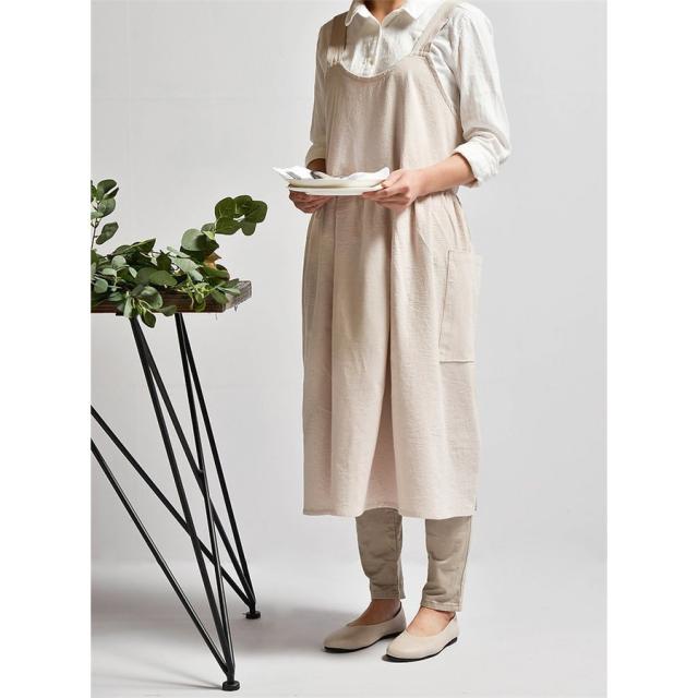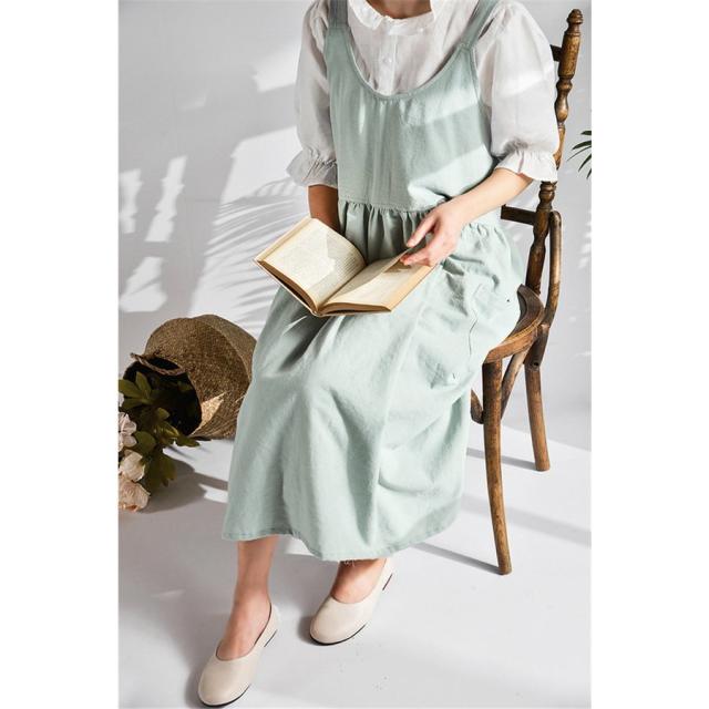 ラウンドネックエプロン リネンコットンエプロン ワンピース レディースエプロン 無地 ワークエプロン ロングエプロン カフェ 保育士 料理人 花屋 キッチン