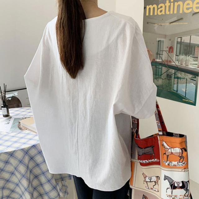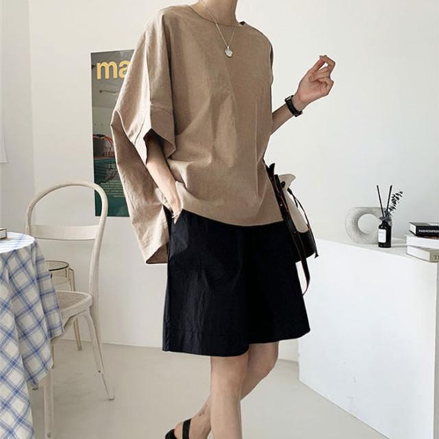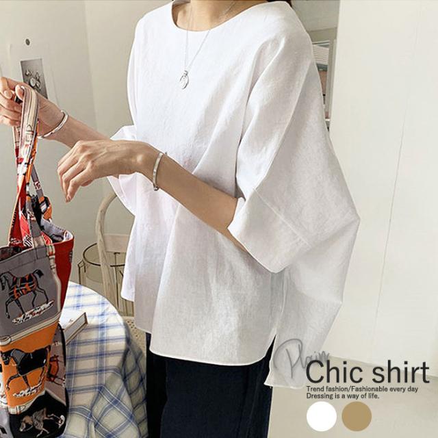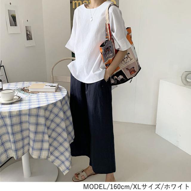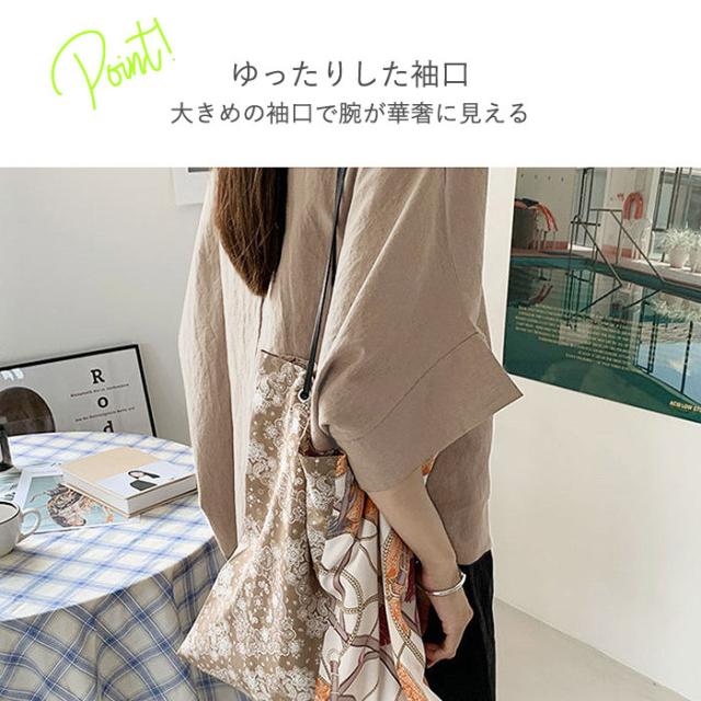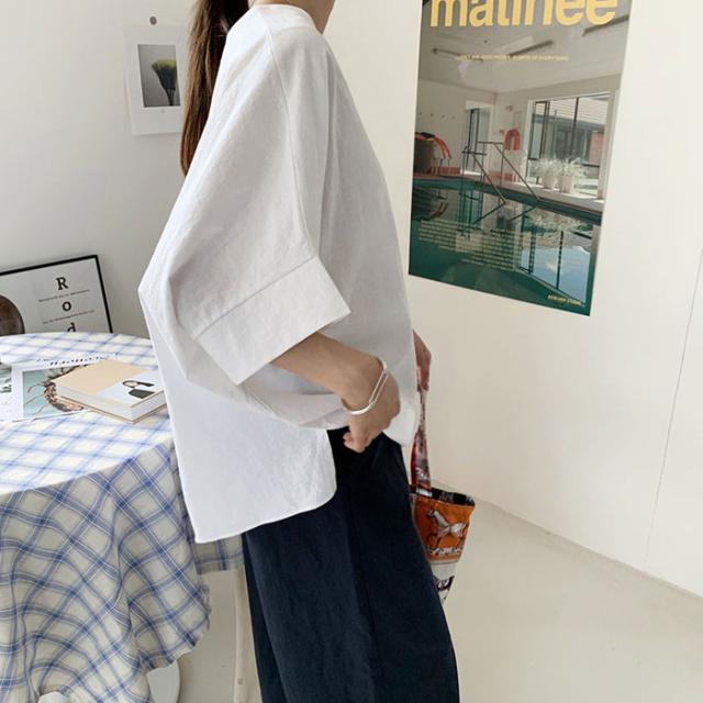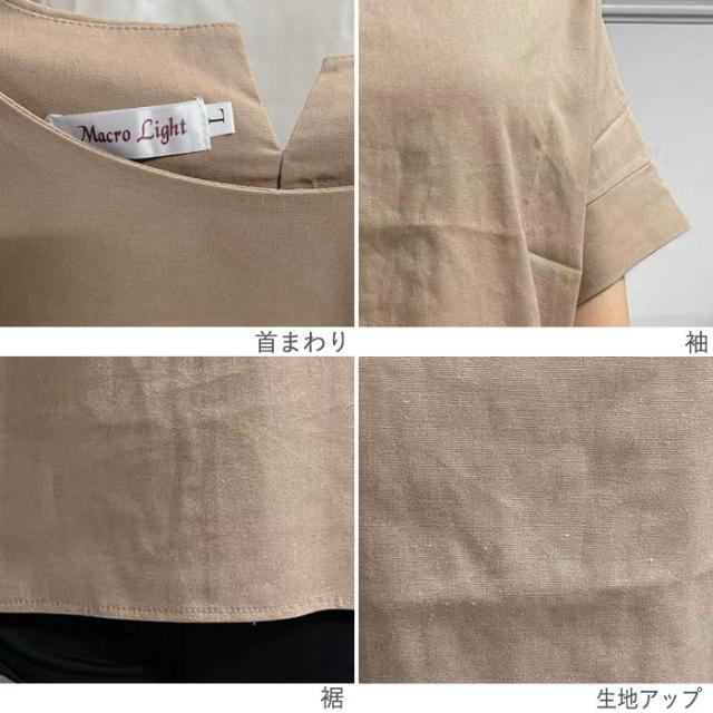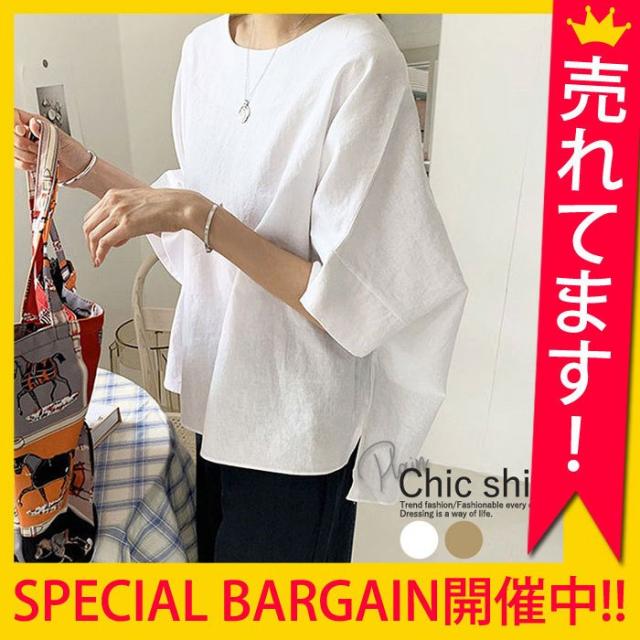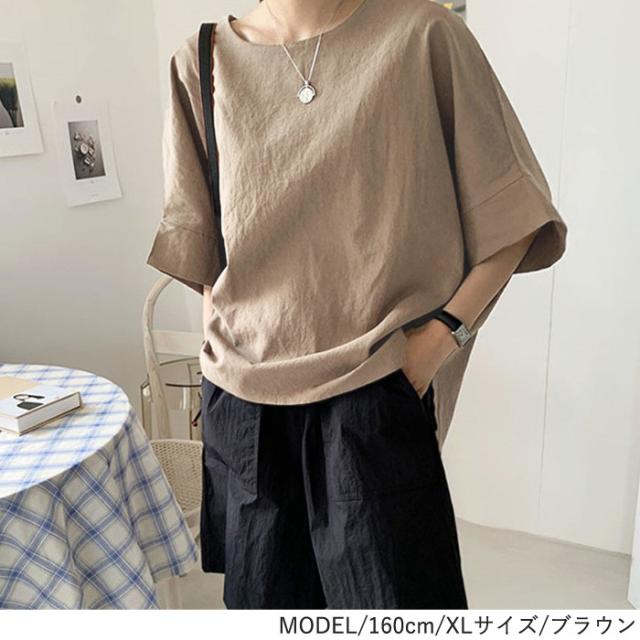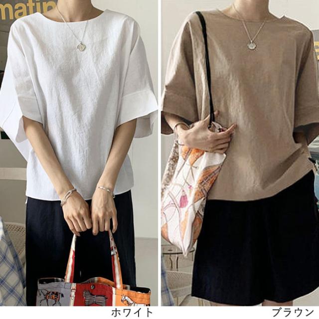 カットソー 5分袖 半袖 春夏 Uネック 丸首 スリット レディース トップス