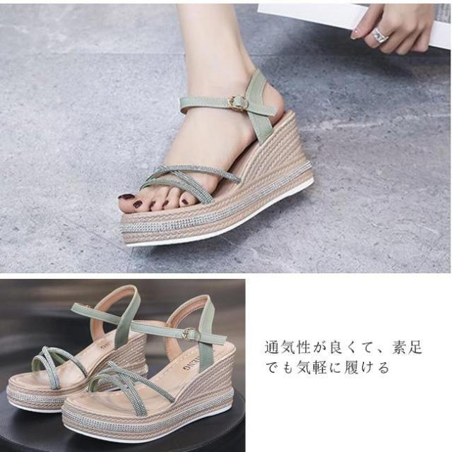 サンダル レディース 厚底 ヒール オープントゥ ウェッジソール ウェッジサンダル 歩きやすい 履きやすい シンプル キラキラ 高級感 可愛い おしゃれ 人気 美脚