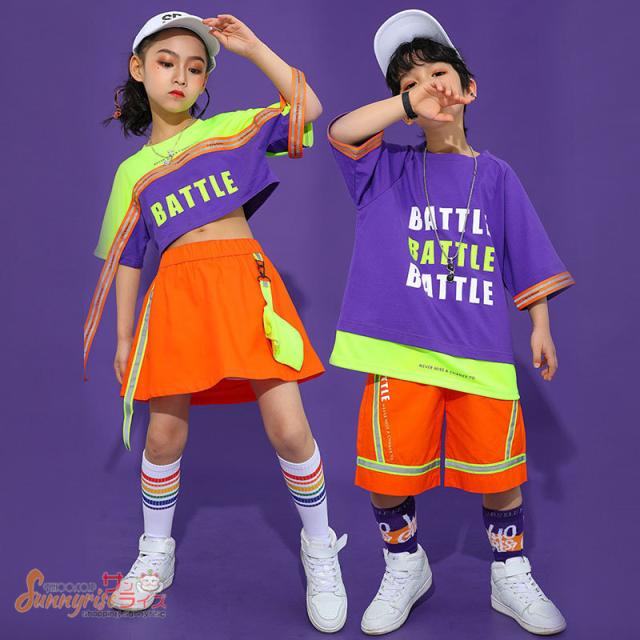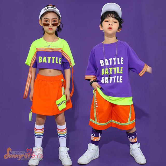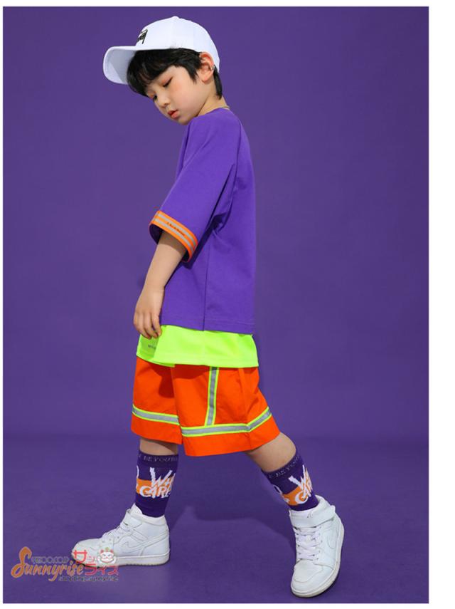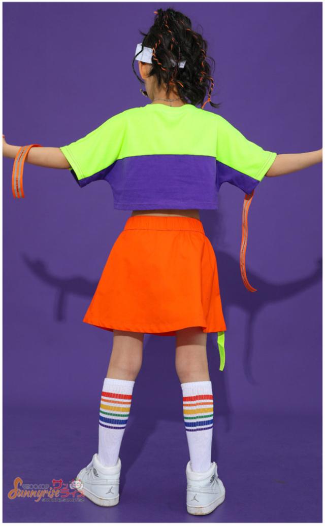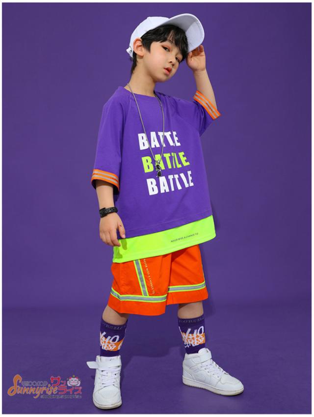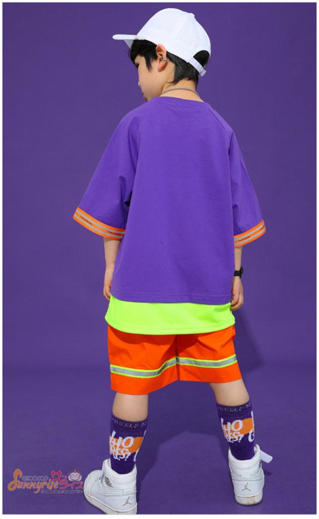 キッズ ダンス 衣装 キッズダンス衣装 へそ出し 切り替え 半袖Tシャツ 夏 ヒップホップ 男の子 女の子 ダンスウェア HIPPOP 練習着 原宿 発表会