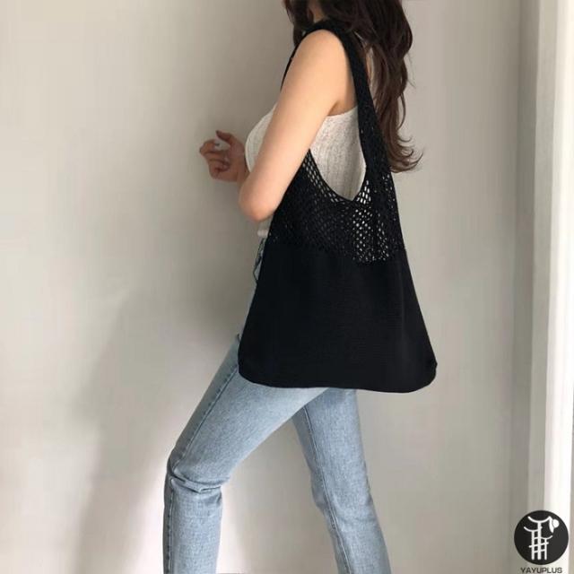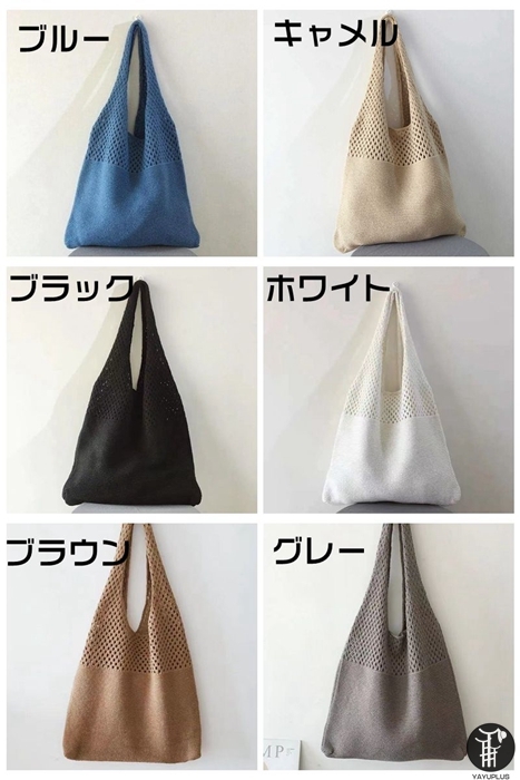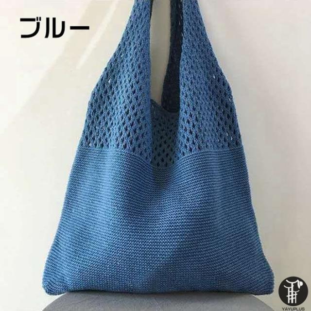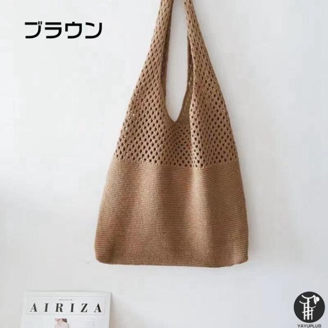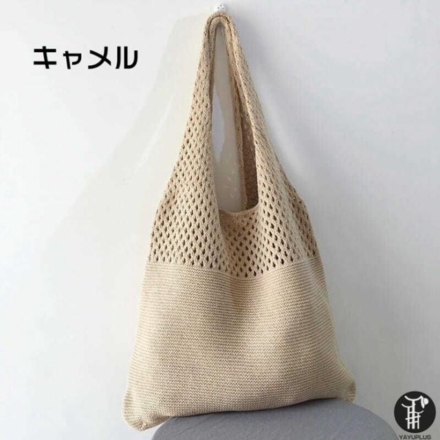 ハンドバッグ レディース トートバッグ サマーバッグ かばん 肩掛け 無地 透かし彫り ニット 手提げ 軽い 軽量 通勤 シンプル