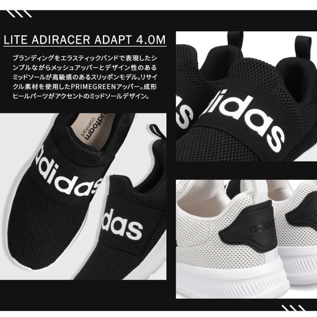 アディダス スリッポン メンズ メッシュ 通気性 エラスティックバンド リサイクル素材 クラウドフォーム シンプル 大きいサイズ ネイビー 黒 ブラック ライトレーサー LITE RACER ADAPT 4.0M H04343 H04807 HO4828 ADIDAS
