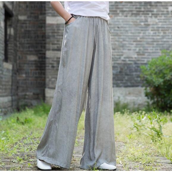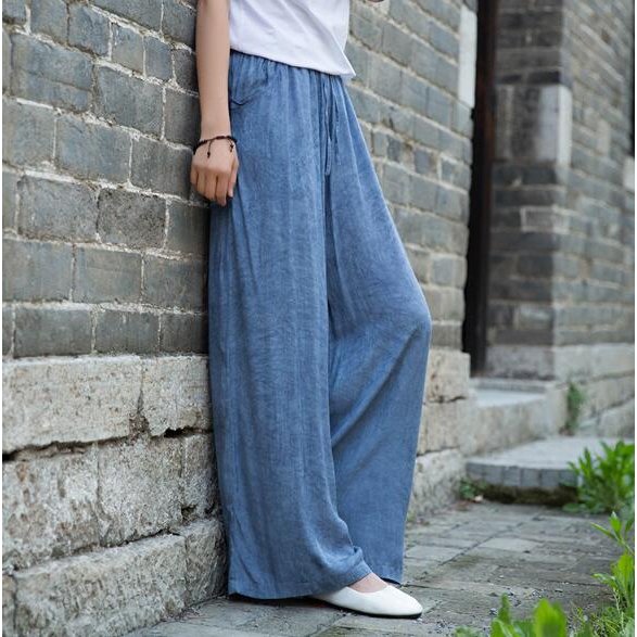 ワイドパンツ レディース ガウチョパンツ ボトムス 体型カバー 大きいサイズ ロング丈 マキシ丈 揺れ感 夏 着痩せ 無地 カジュアル ゆったり