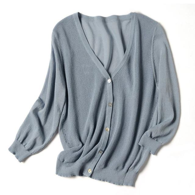 カーディガン レディース Vネック シースルー 薄手 ライトアウター ニットソー素材 無地 長袖 冷房対策 オフィス トップス 夏 シンプル