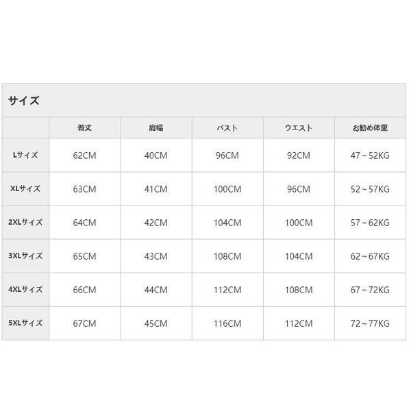 | サイズ | M L XL 2XL 3XL 4XL 5XL 6XL |