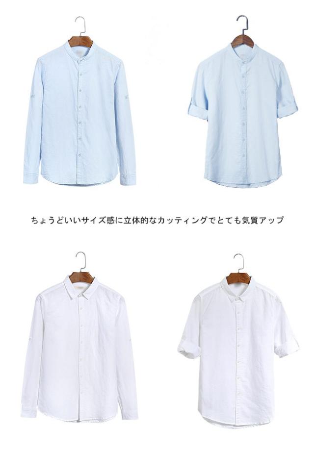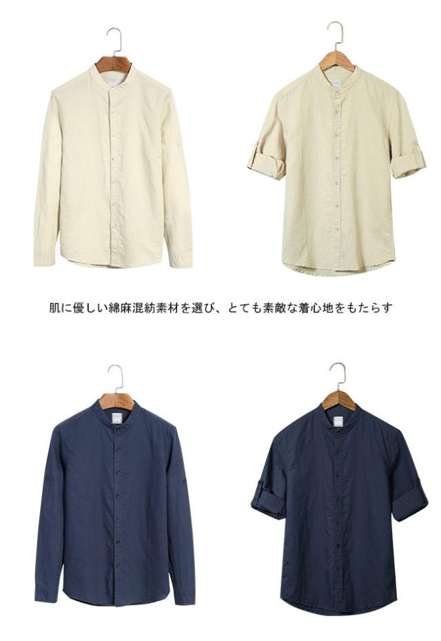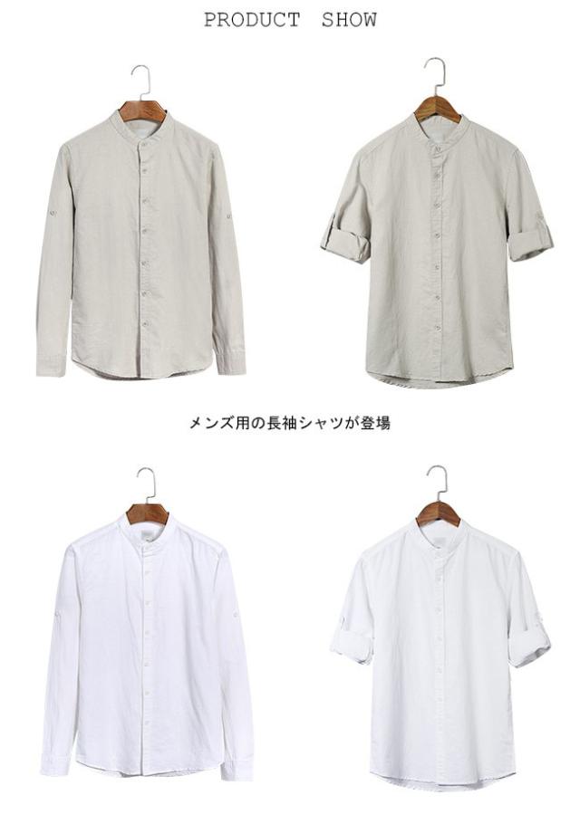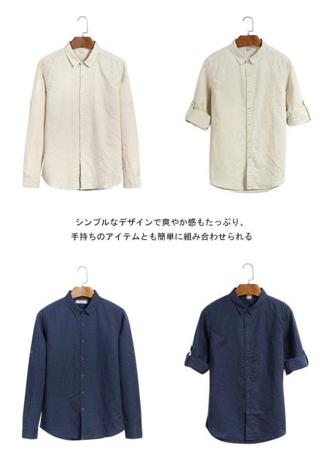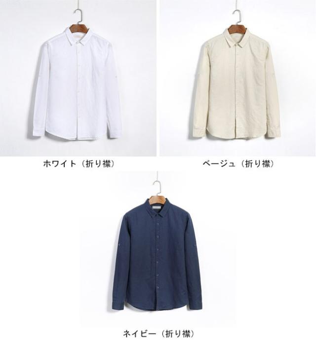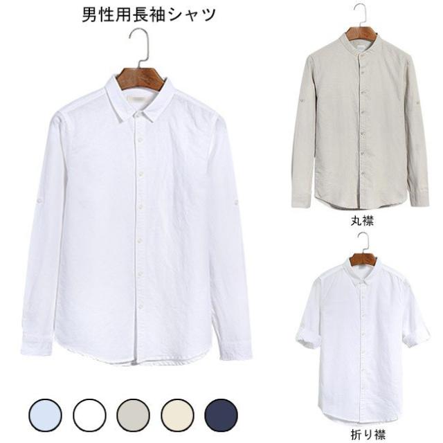 シャツ 長袖 メンズ リネンシャツ 折り襟 ワイシャツ 丸襟 カジュアルシャツ シンプル 男性用 トップス 長袖シャツ 綿麻 春秋物 爽やか