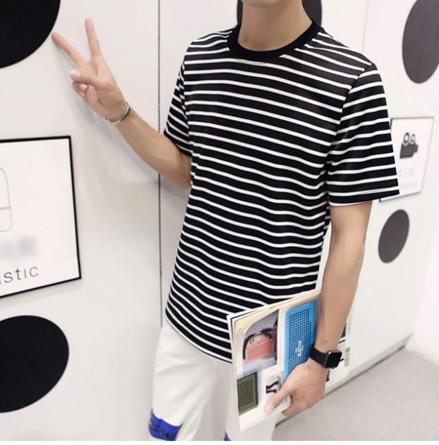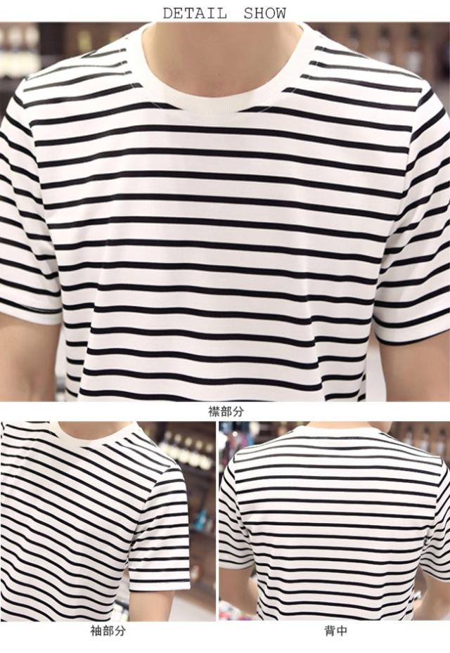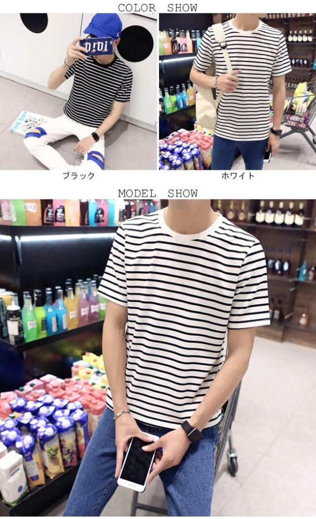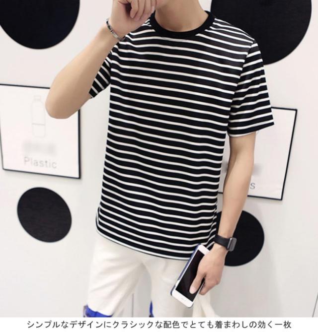 メンズTシャツ 半袖 ボーダー柄 丸襟 マリンセーラー 男性用 半袖Tシャツ カジュアル トップス 夏物 薄手 爽やか 着まわし