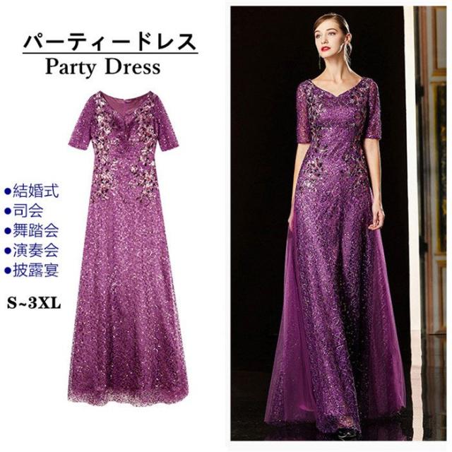 イブニングドレス ロングドレス カラオケドレス 衣装 パープル ステージドレス パーティードレス 発表会 演奏会 結婚式