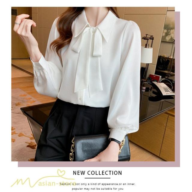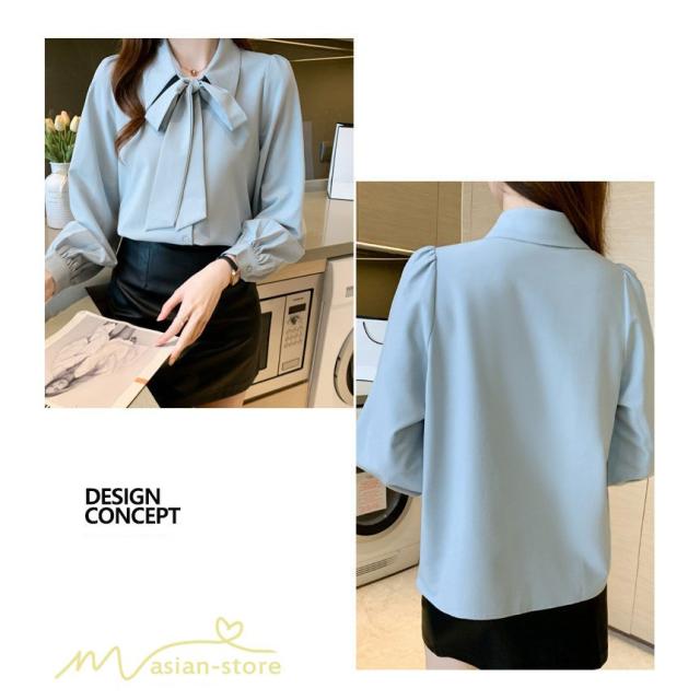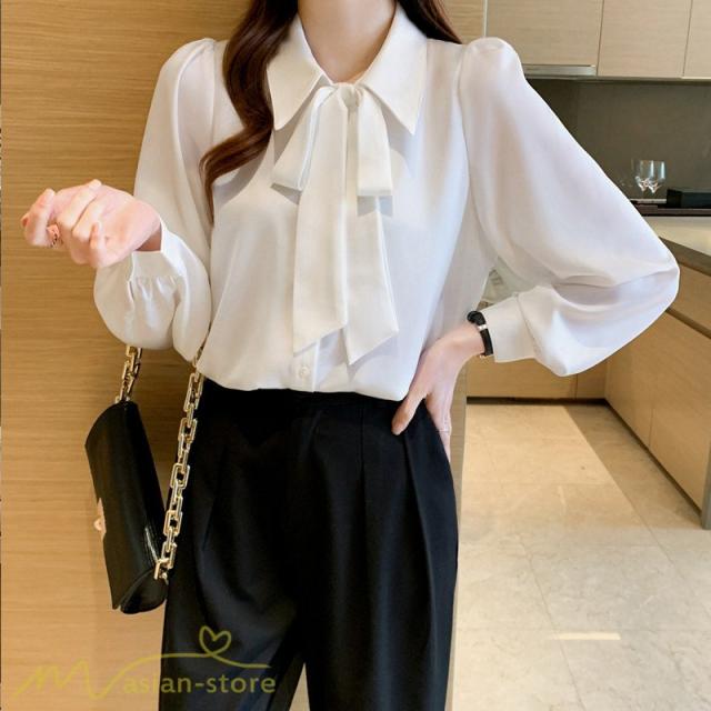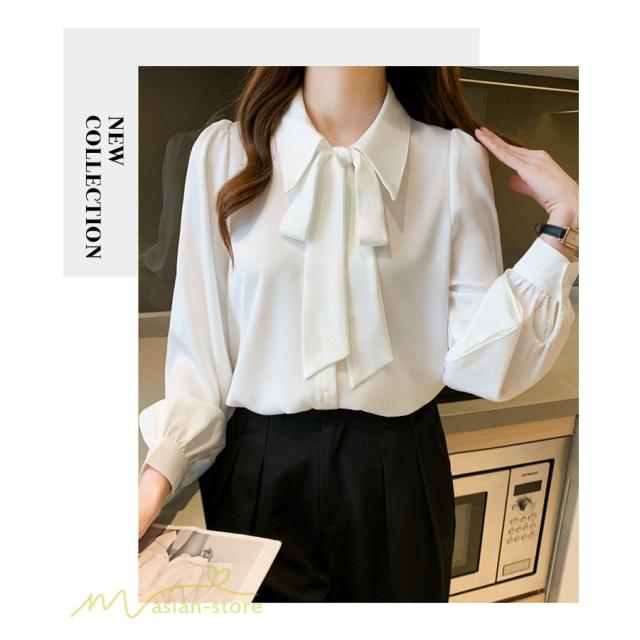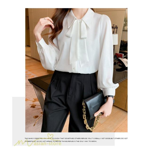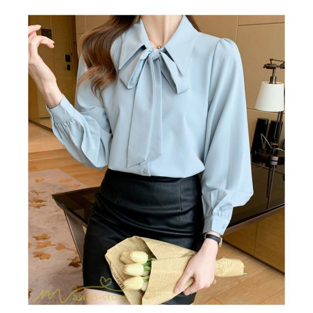 長袖シャツ レディース トップス シャツ 長袖 無地 蝶結び きれいめ 可愛い 長袖 秋服 白シャツ 大きいサイズ 日常感 エレガント フォールシャツ お出かけ 上品