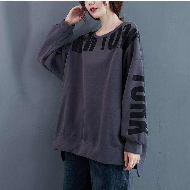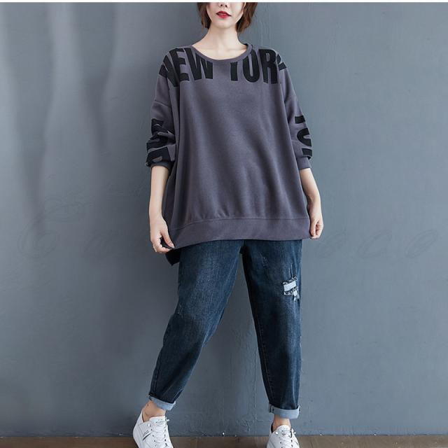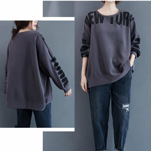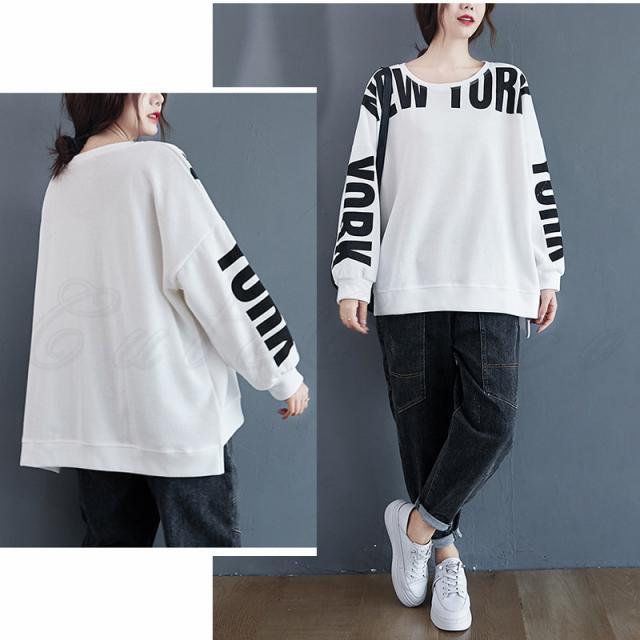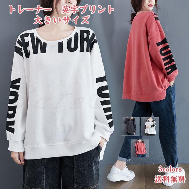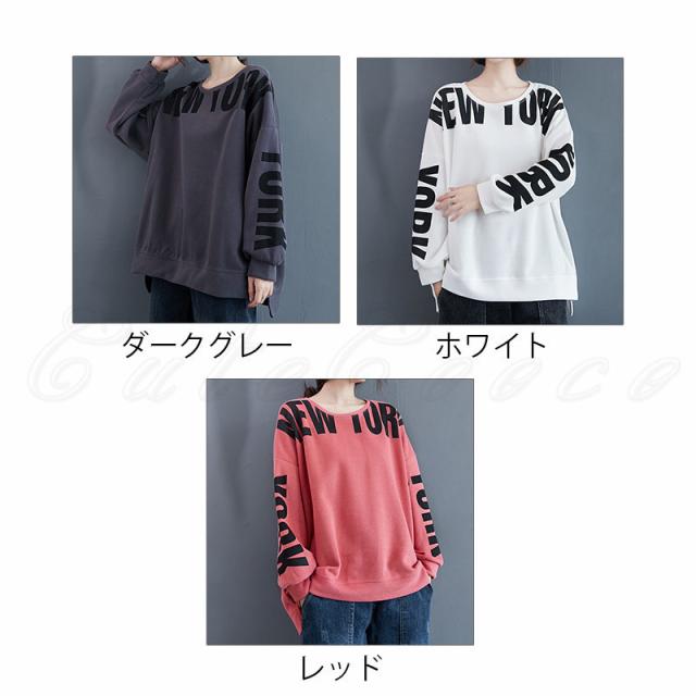トレーナー レディース パーカー 英字プリント クルーネック トップス カジュアル スリット入り 大きいサイズ ゆったり 春秋 きれいめ おしゃれ