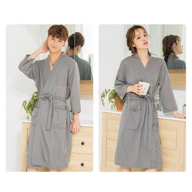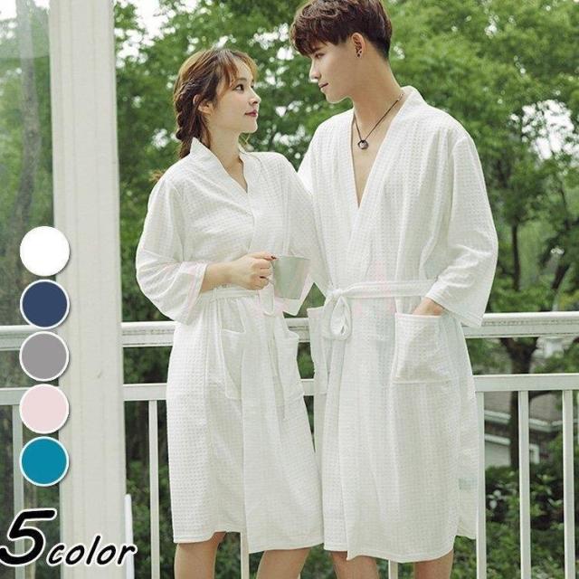 バスローブ レディース/メンズ バスローブ 長袖ナイトガウン ロング丈 ナイトロープ ホテル パープルパジャマ 前開き ランジェリー 夏用 薄手男女兼用