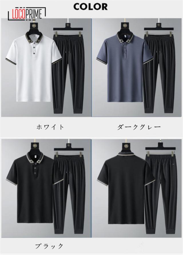 メンズ 2点セット セットアップ 上下セット スエット ロングパンツ POLOシャツ 襟付き ポロ 涼しい 通気性 吸汗速乾 薄手 カジュアル 大きいサイズ 夏服 夏物