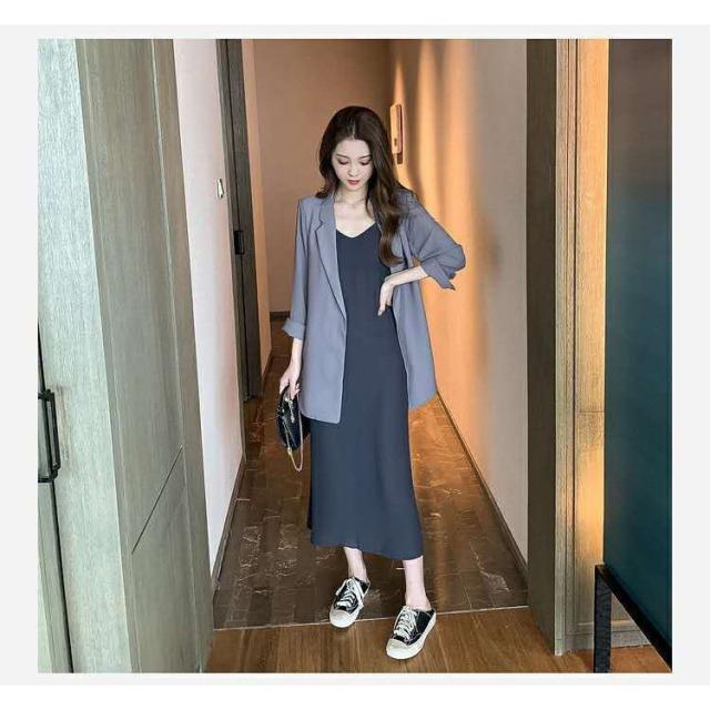 ワンピース2点セット レディース 40代 秋新作 長袖スーツジャケットキャミワンピース ロング丈 ワンピースセットアップ オシャレ韓国風 大人 通勤 40代