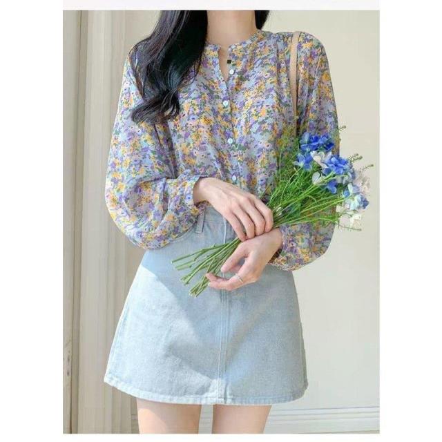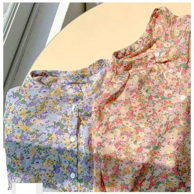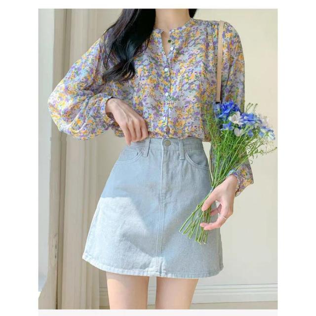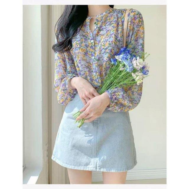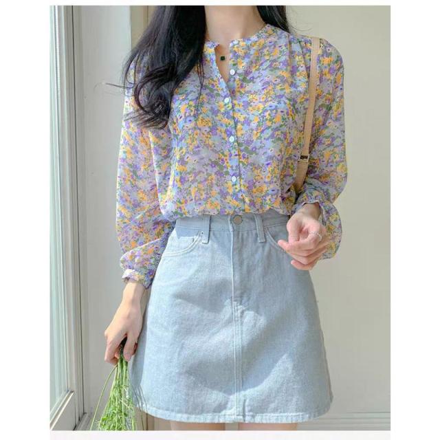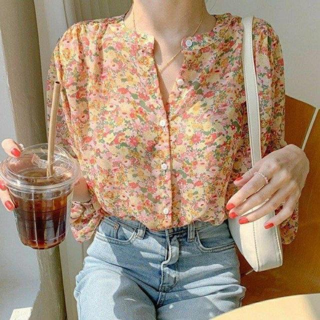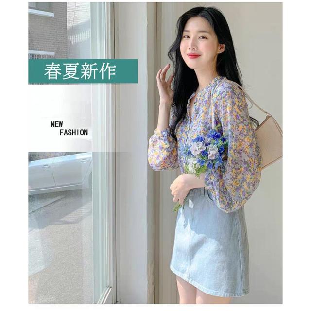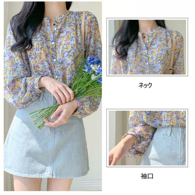ブラウス レディース きれいめ 40代 春夏秋新作 オシャレブラウス 花柄シフォンシャツ 長袖トップス Vネックブラウス 大人 通勤 ゆったりシャツ 韓国風 UVカット