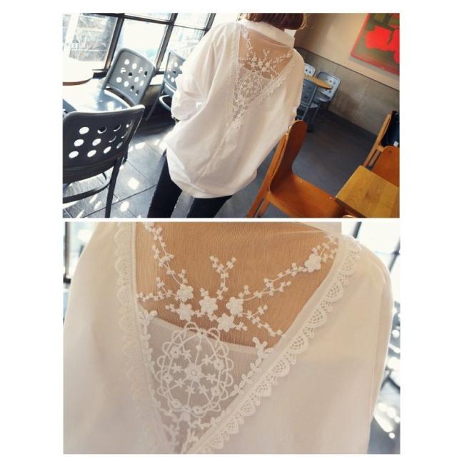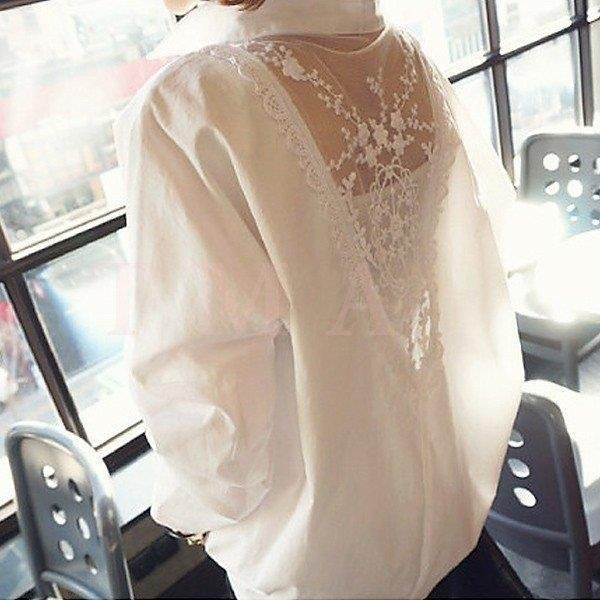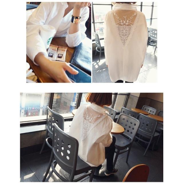 ブラウス トップス レディース オシャレ レース シャツ ゆったり 長袖 ロング丈ブラウス 切り替え 韓国風 白 40代 春 夏 秋