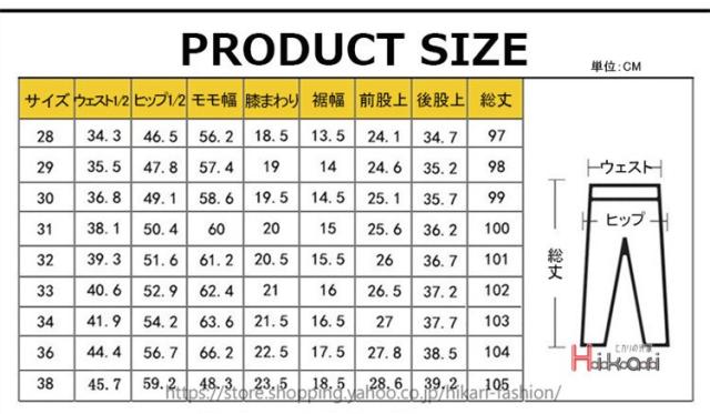 | サイズについての説明 | サイズ 29 30 31 32 33 34 36 38 |