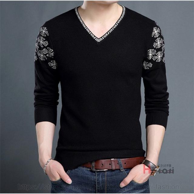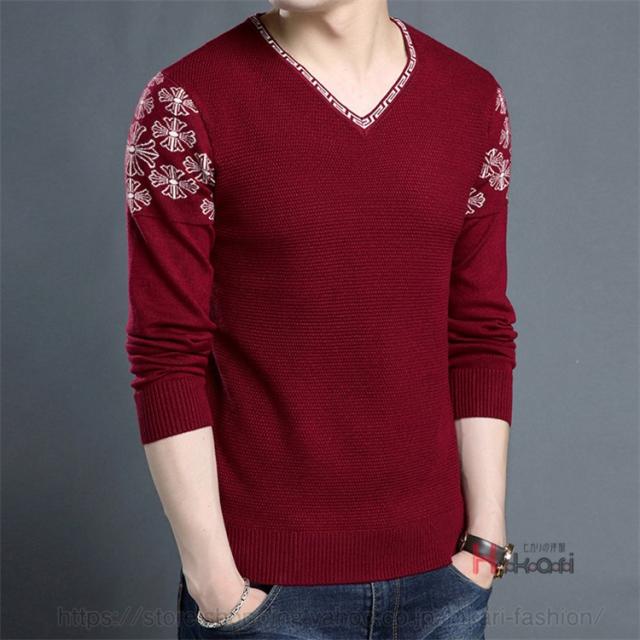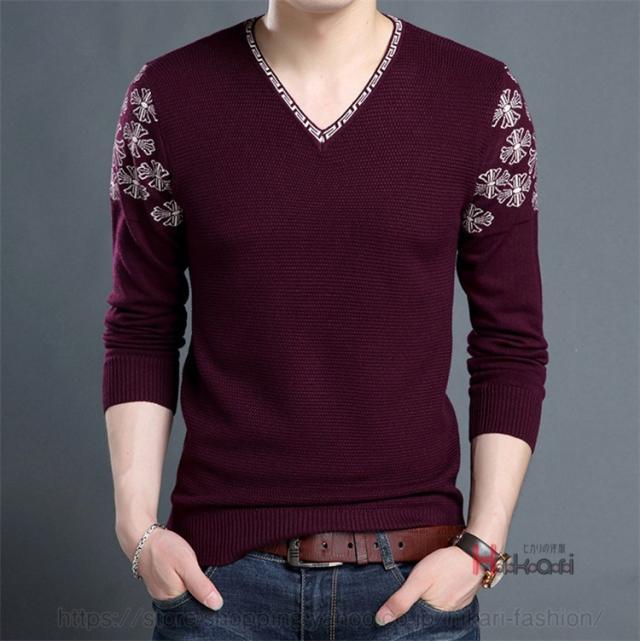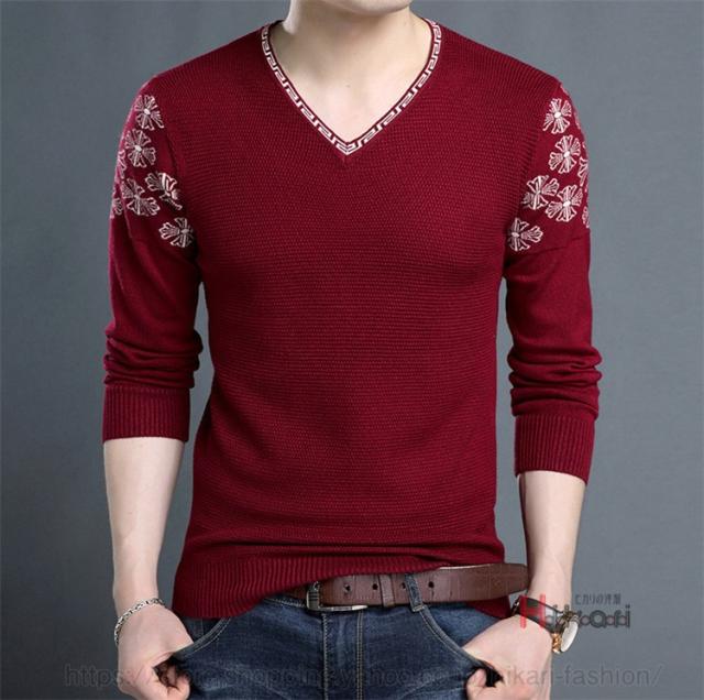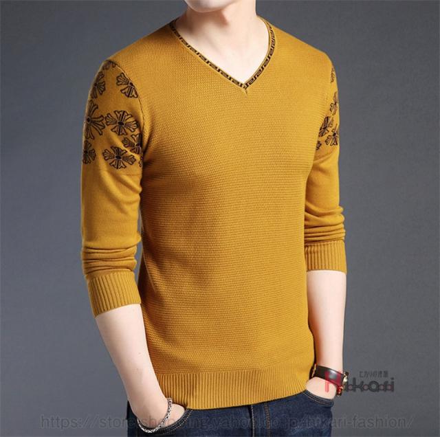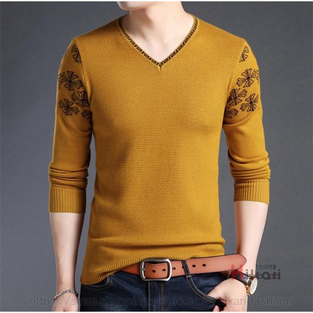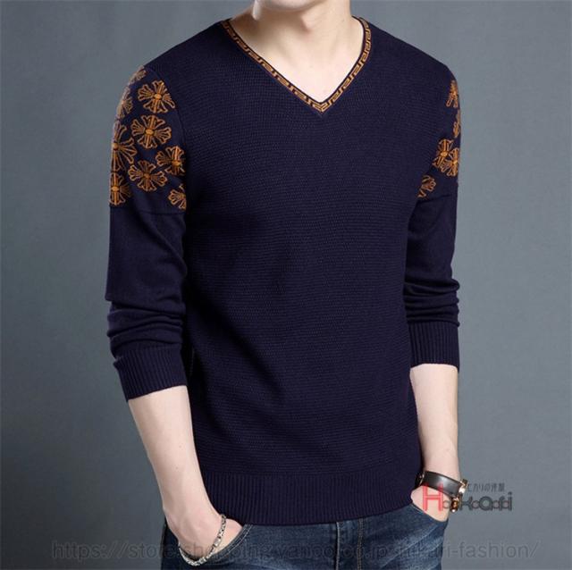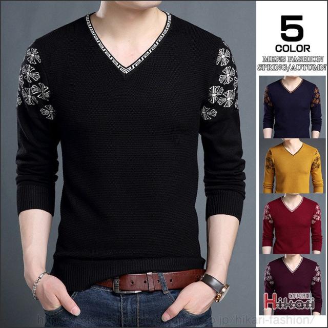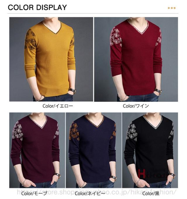ニットセーター メンズ Vネック 長袖 ニット スリム 秋ニット 春物 冬物 セーター カジュアル おしゃれ