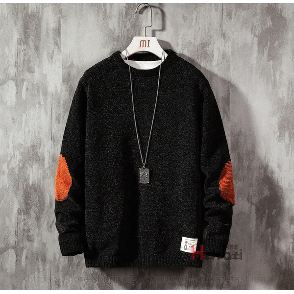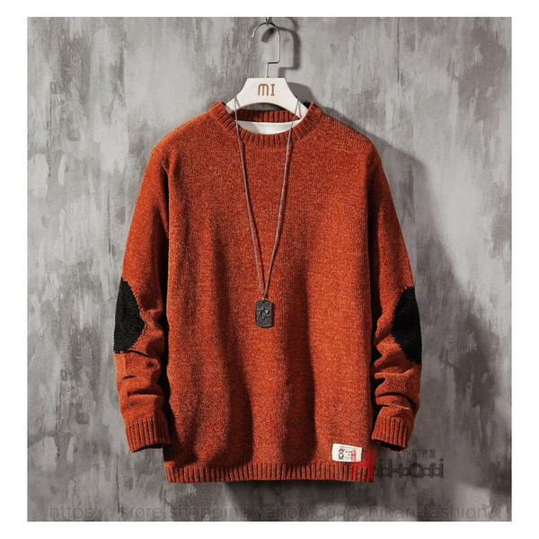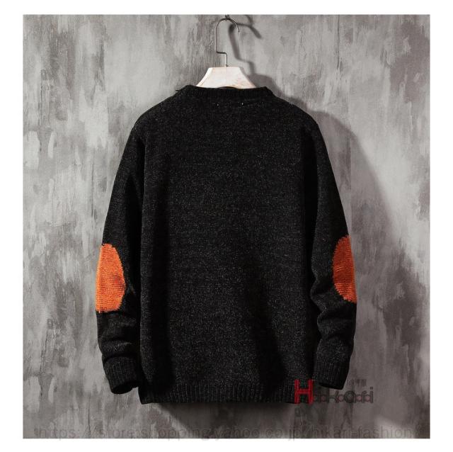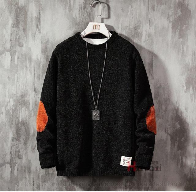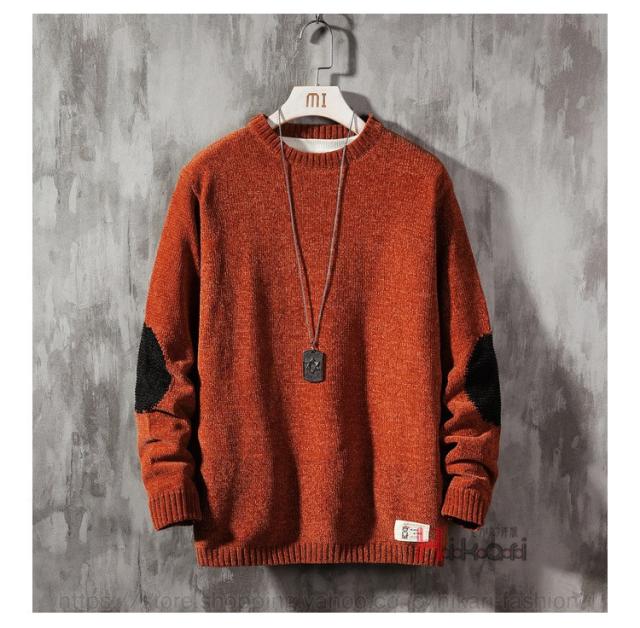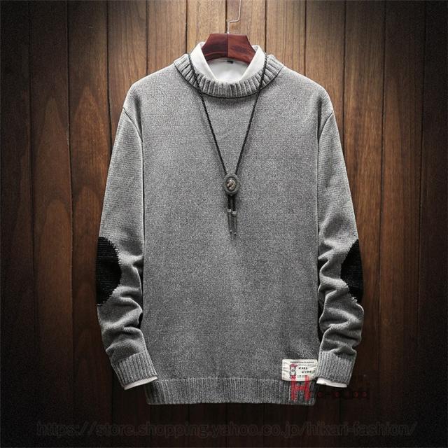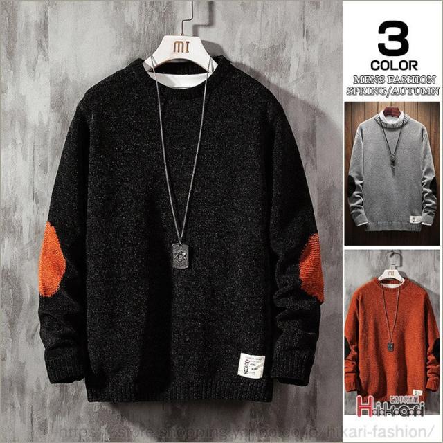 秋ニット セーター メンズ ニットセーター 肘当て付き 長袖 トップス ニット クルーネック カジュアル 春服 秋冬