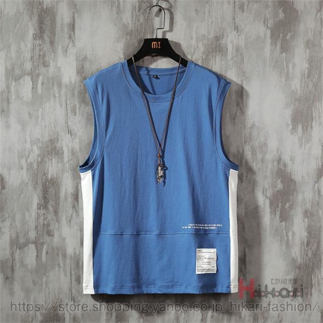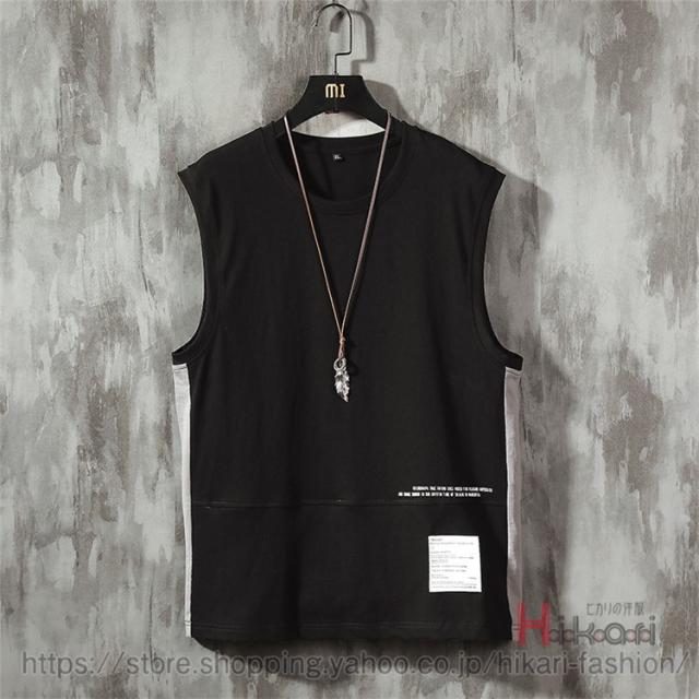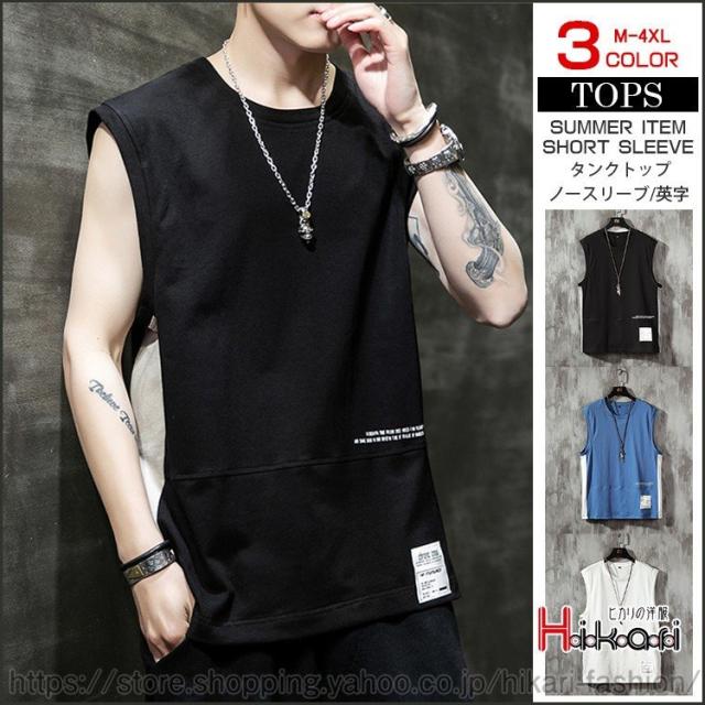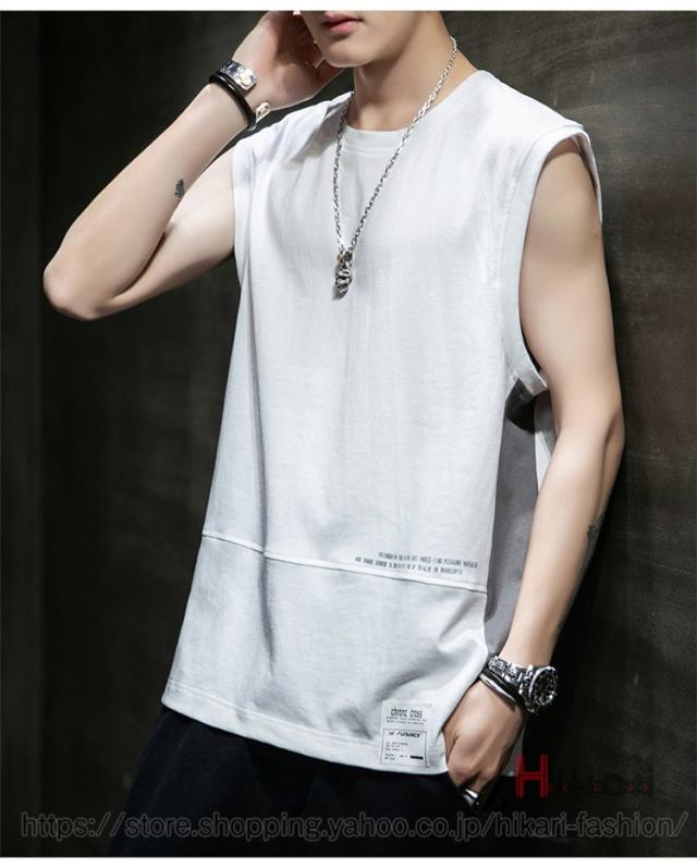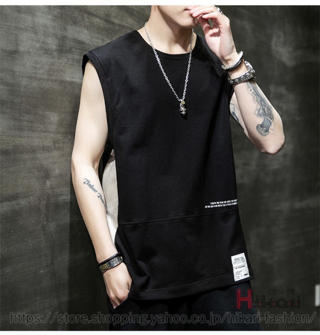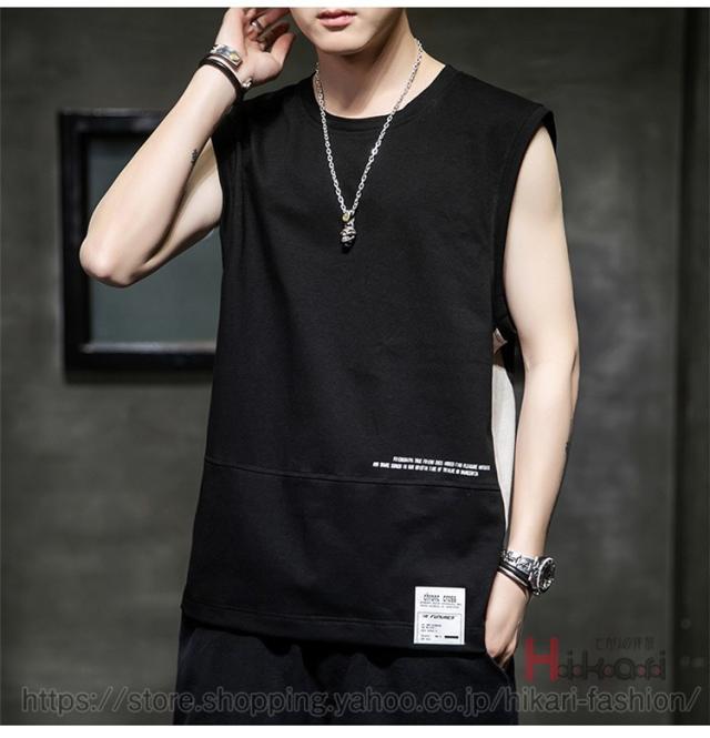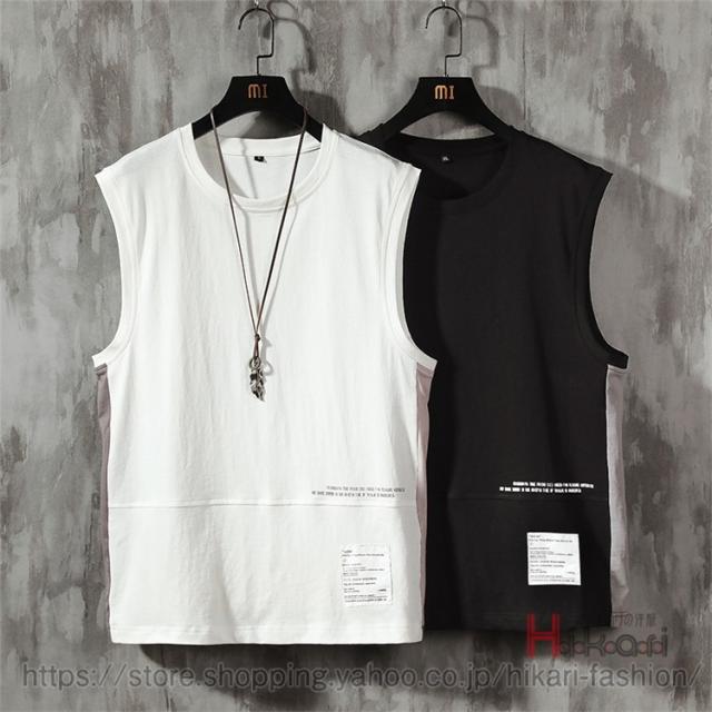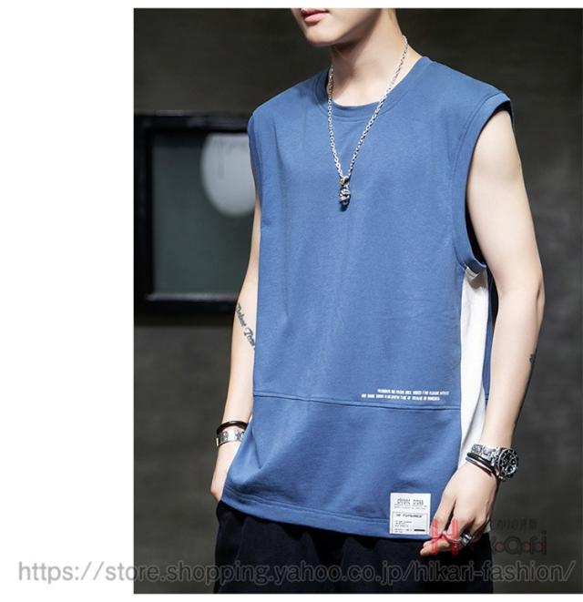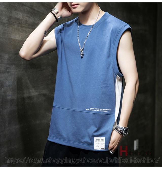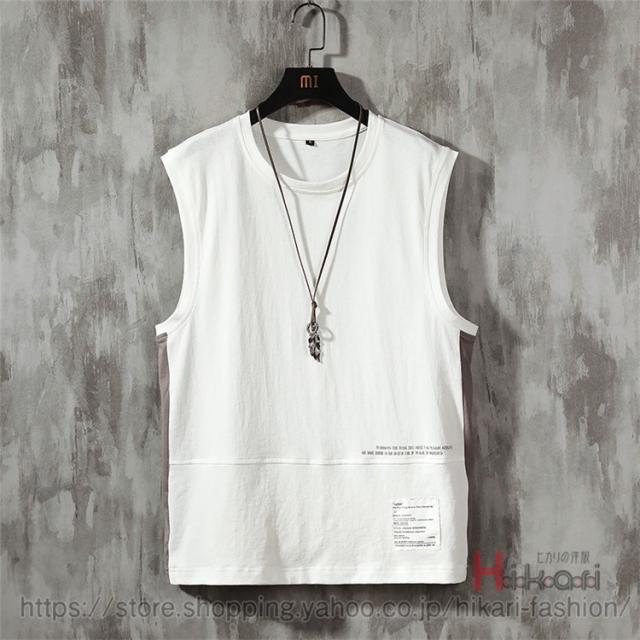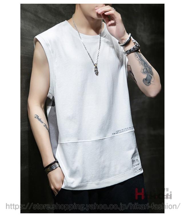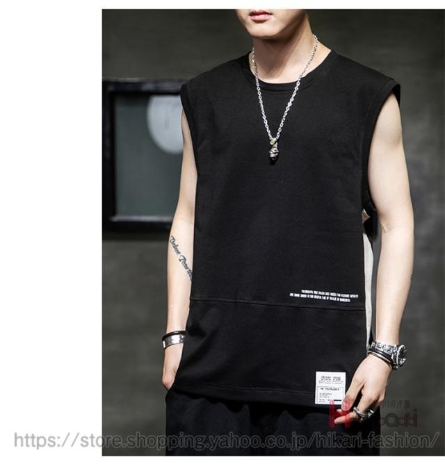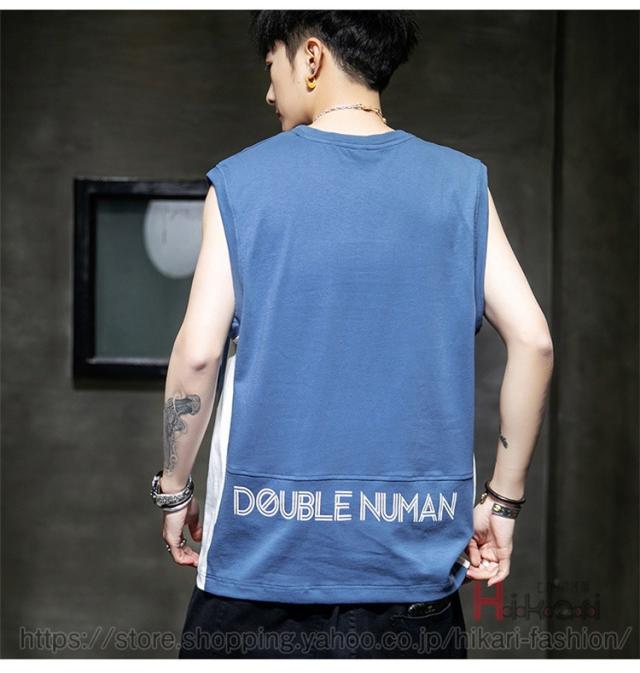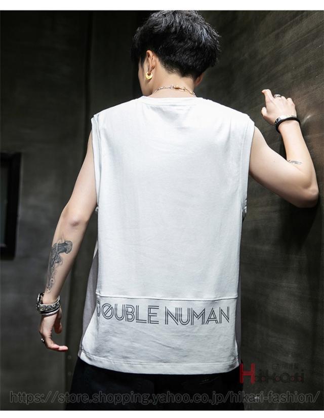 タンクトップ メンズ ノースリーブ tシャツ 夏物 トップス 袖なし タンク 切り替え 英字プリント 2021 父の日