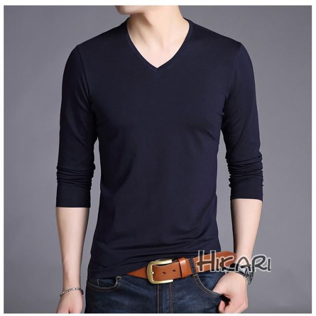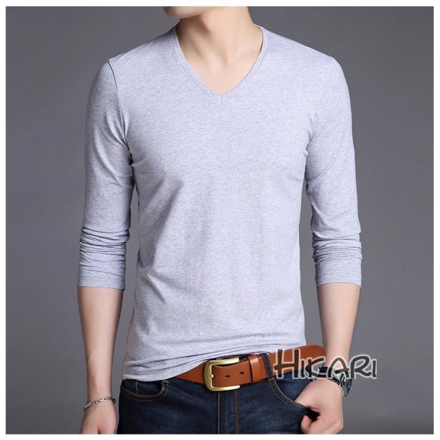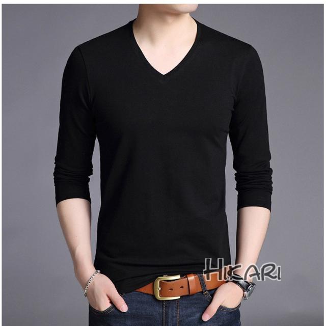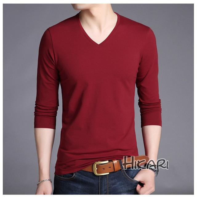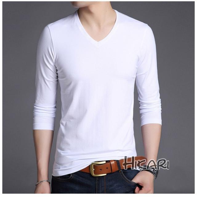 Tシャツ メンズ Vネック 無地 長袖 メンズtシャツ ロングtシャツ インナーシャツ カットソー 肌着 細身 春服