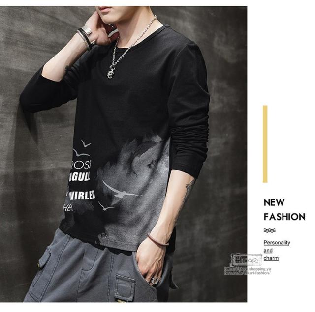 プリントTシャツ メンズ Tシャツ おしゃれ ロンT 長袖Tシャツ トップス メンズTシャツ スリム 英字柄 父の日